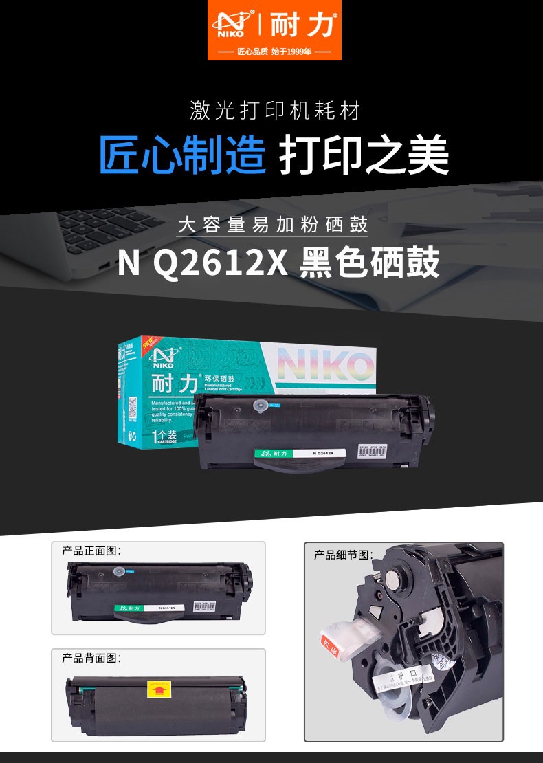 耐力(NIKO)N Q2612X大容量易加粉黑色硒鼓(适用惠普 LaserJet 1010/1015/1020/3050/M1005/M1319f)