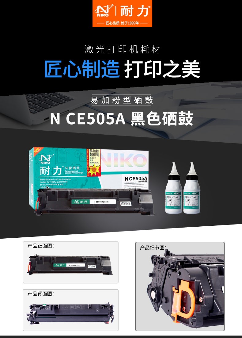 耐力(NIKO)N CE505A易加粉+2瓶墨粉 黑色硒鼓 (适用惠普 LaserJet P2035/P2055,佳能 LBP6300dn)