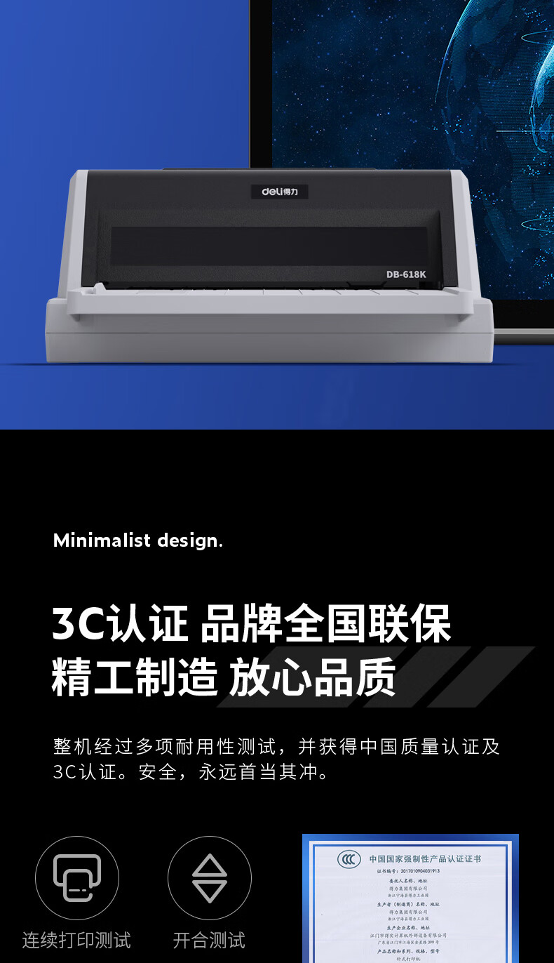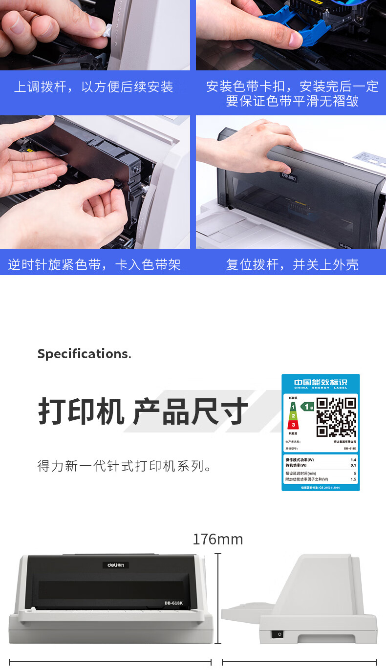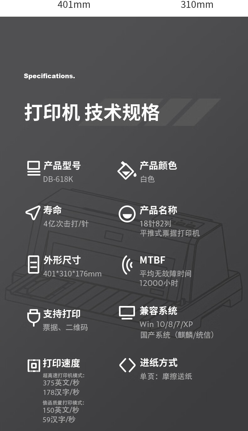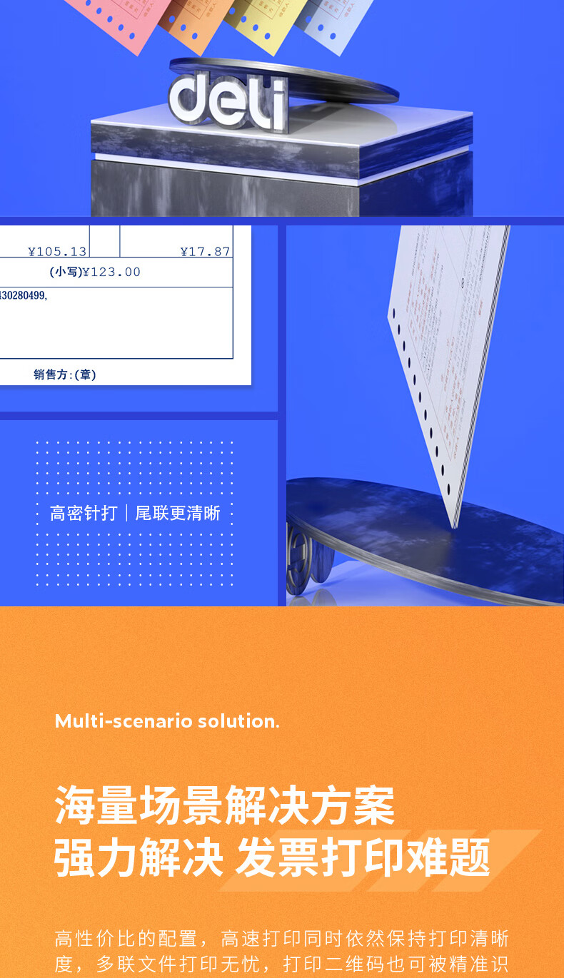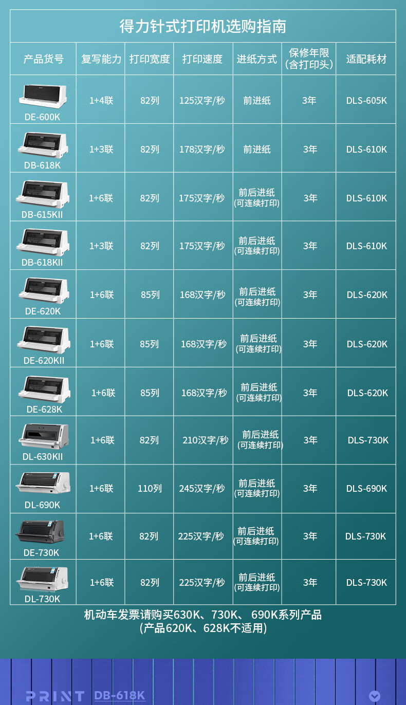 得力(deli)DB-618K 1+3联针式打印机 营改增税控发票打印机 票据电子面单(82列)