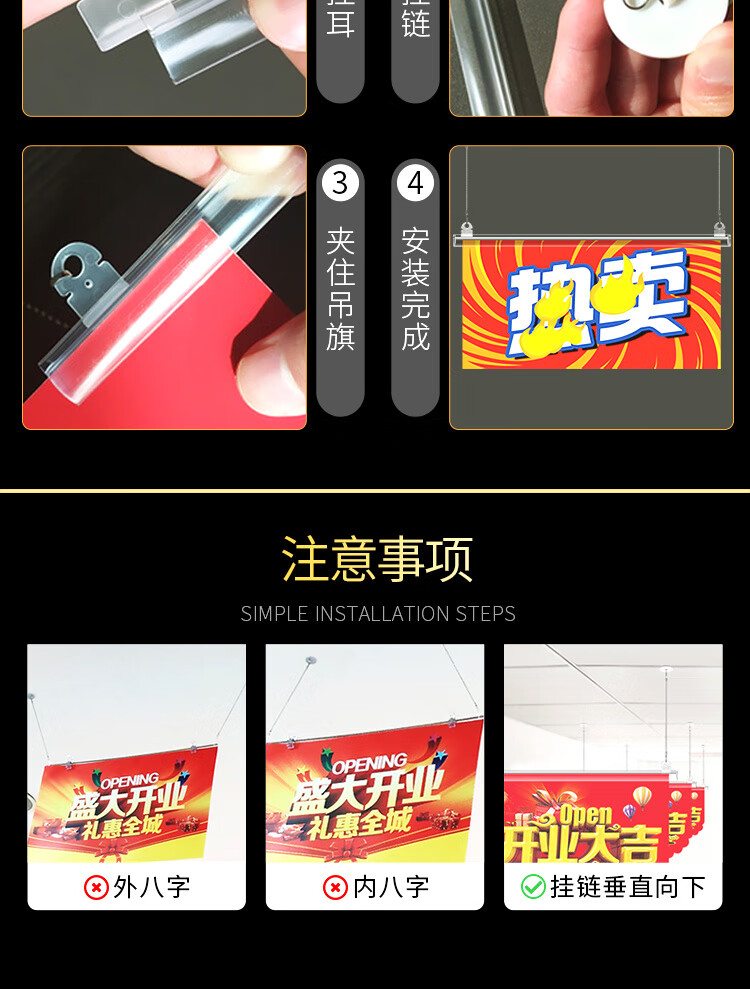 50CM吊旗悬挂杆 PVC海报杆挂钩挂链三件套