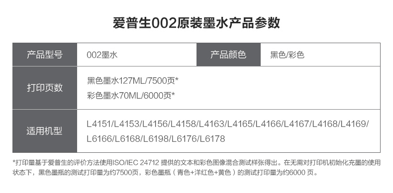 爱普生(EPSON)002系列原装墨水黄色((适用L415X/L416X/L426X/L616X/L617X系列等)