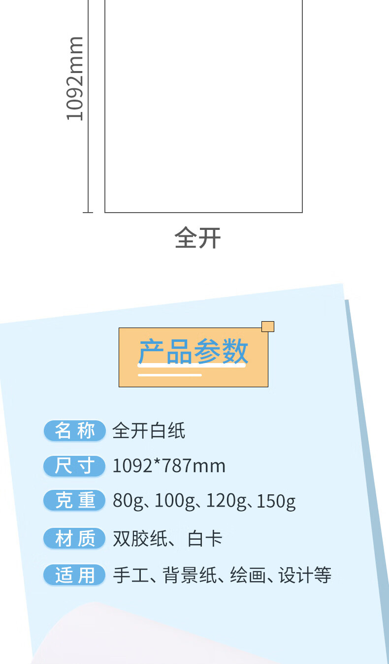 白色120g全开海报纸 大卡纸 10张/卷 1189*841mm