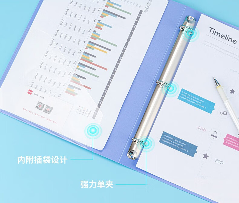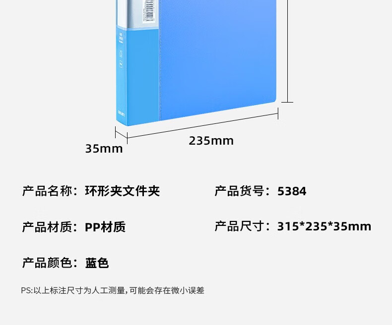 得力(deli)A4文件夹打孔加厚35mm防水插页活页夹资料夹 三孔O型 单只装