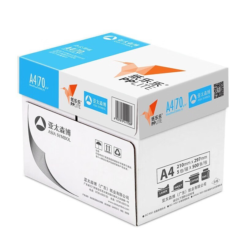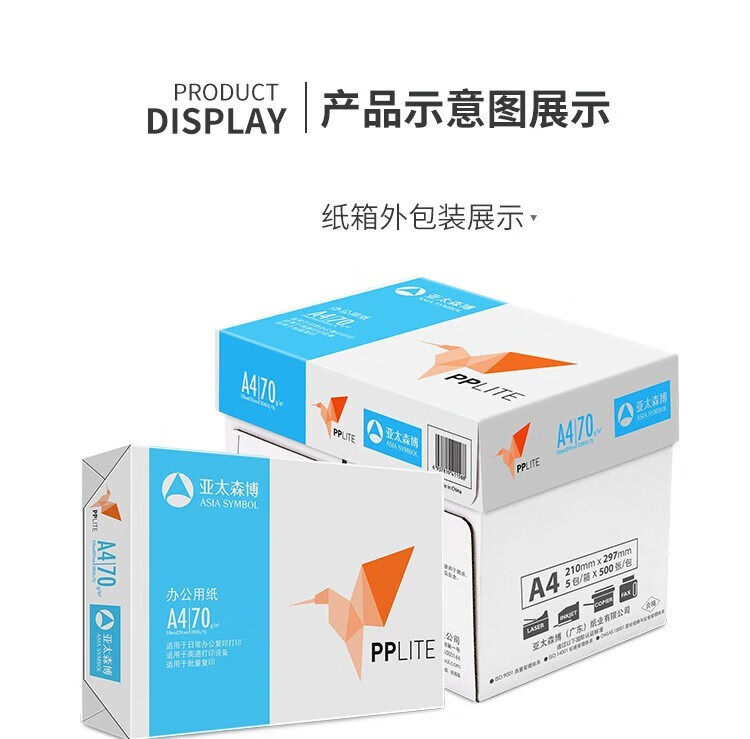 亚太森博 PPLITE小鸟70克A4复印纸 打印纸