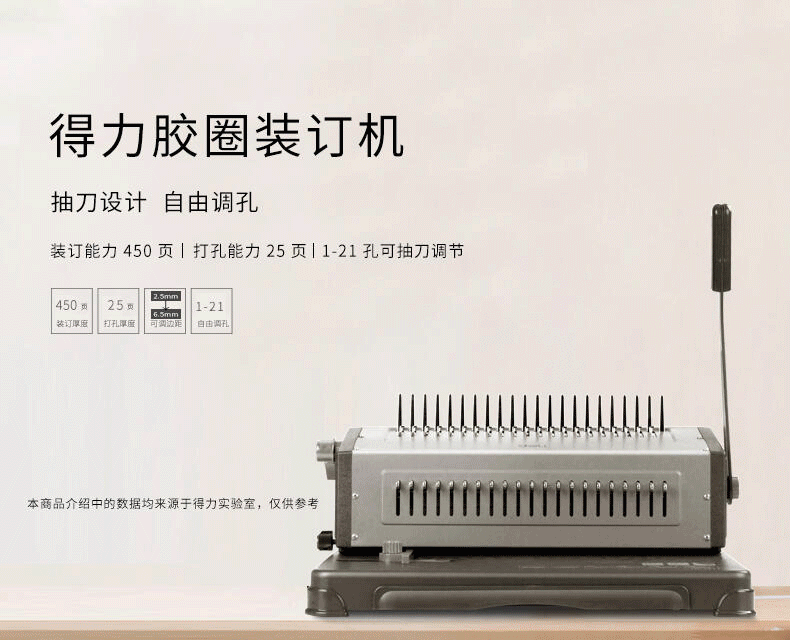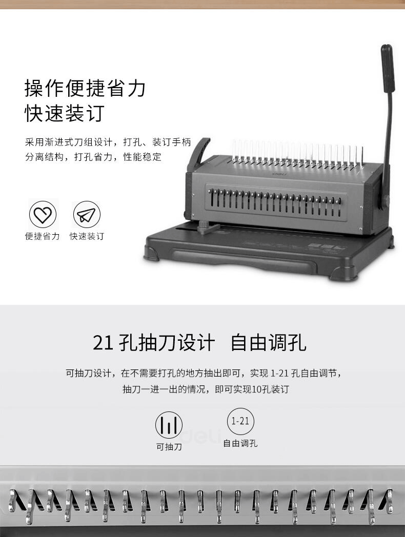 (deli)胶圈/夹条装订机 21孔文件打孔机 梳式财务装订机 3827-10孔夹条 10mm