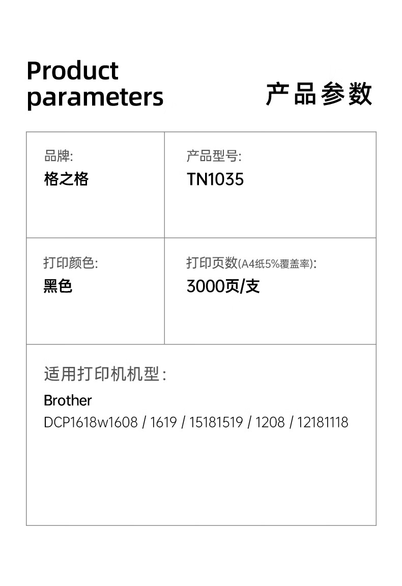 格之格TN1035/DR1035鼓粉套装适用兄弟DCP1608 1618W1813 1816 1818 1819 1919NW 1906 1908 HL1208 1218w硒鼓