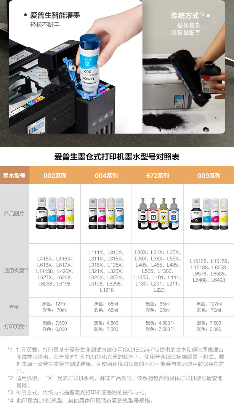 爱普生(EPSON) 002墨水L4158 L4168 6168 L6178 L6198 T03X1-002黑 原装
