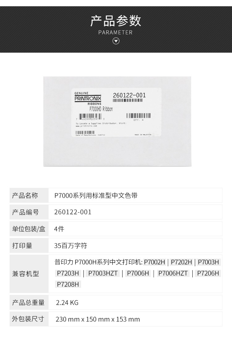 普印力printronix P7003H色带架 行式打印机 中文原装色带盒 标准型中文色带(1支装/盒)