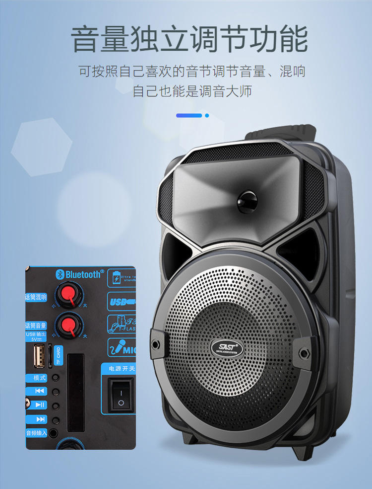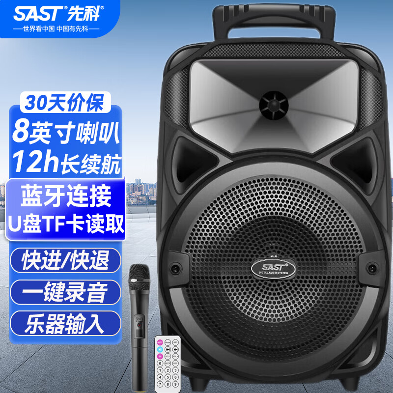 先科广场舞音响户外大功率移动拉杆音箱无线蓝牙大音量K歌专用便携式配话筒麦克风 长续航版
