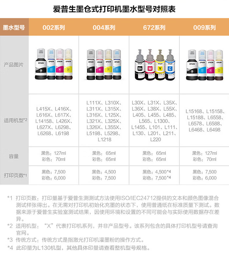爱普生(EPSON) T672 墨水适用于L221/L363/L351/L565/L455 墨仓式打印机墨水T6724黄色墨水 原装 墨水