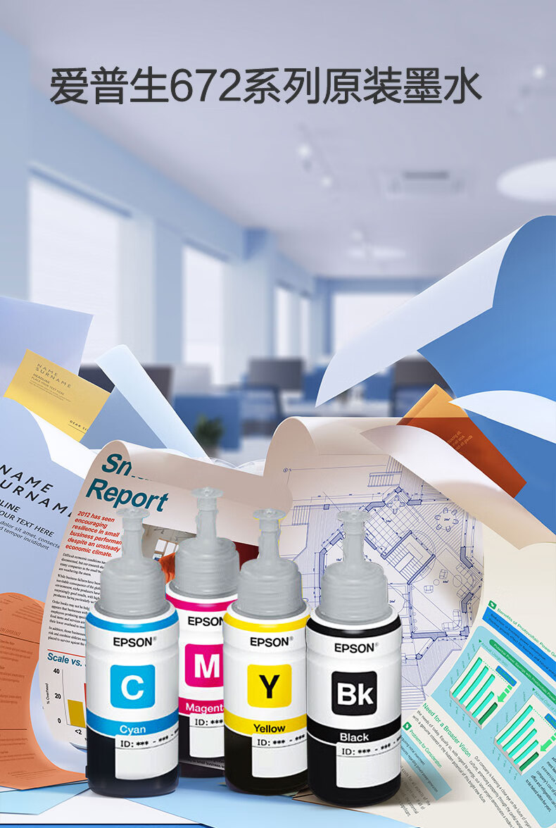 爱普生(EPSON) T672 墨水适用于L221/L363/L351/L565/L455 墨仓式打印机墨水T6722青色墨水 原装 墨水