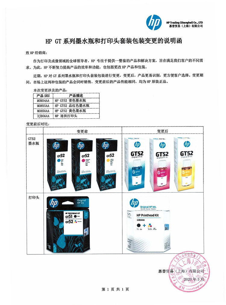 惠普 GT52C 墨水(GT5810/GT5820)