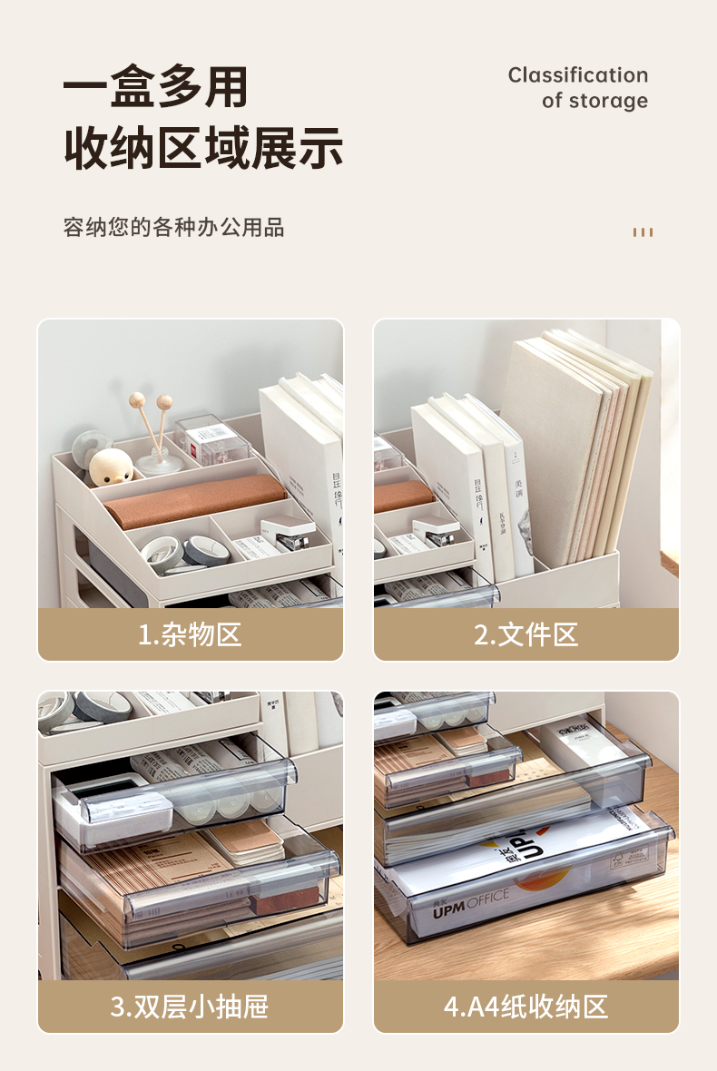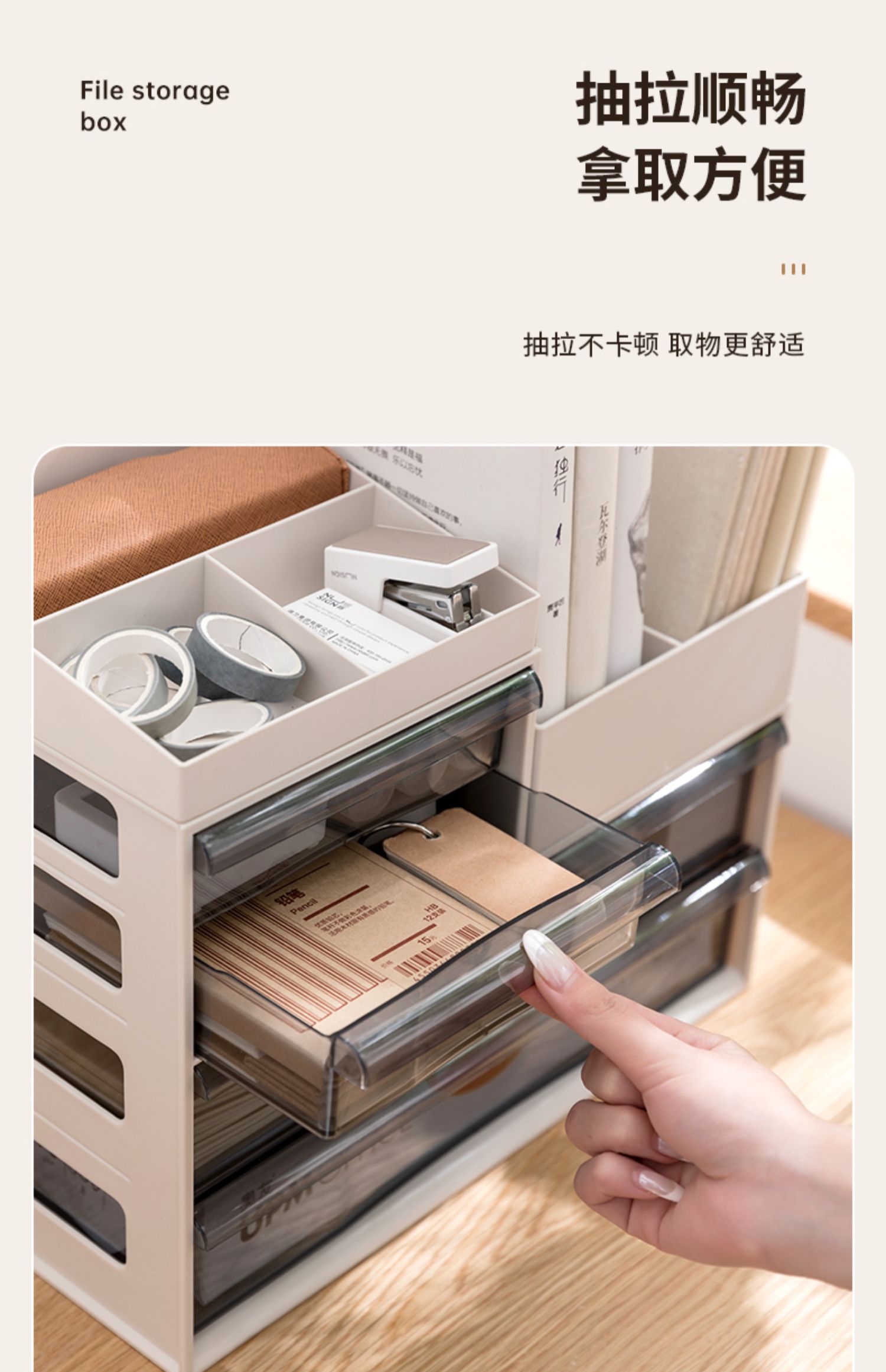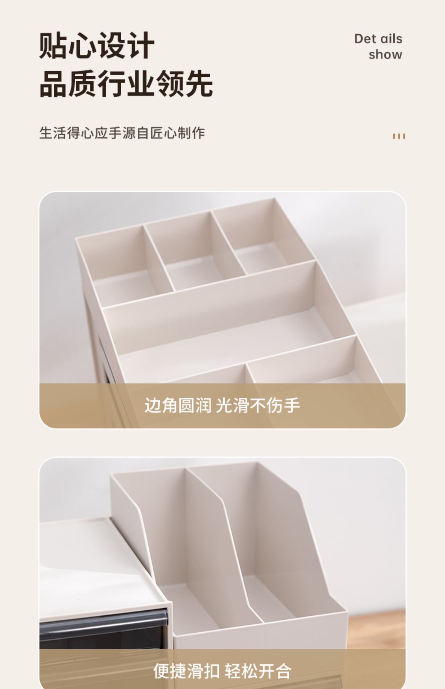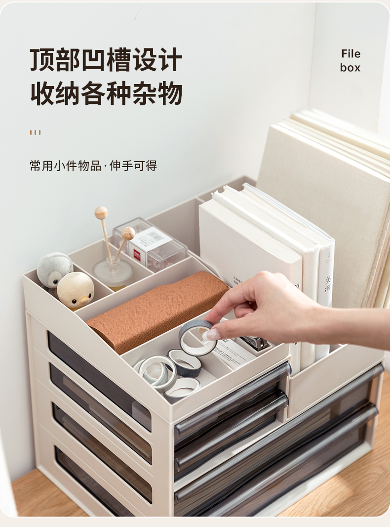 收纳盒塑料抽屉式置物架6304 卡其色