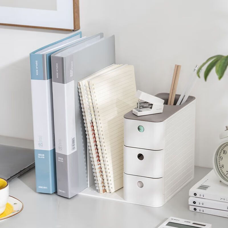 简易收纳架桌面抽屉式 灰白色三层/一体笔筒
