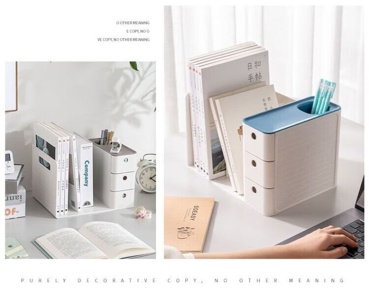简易收纳架桌面抽屉式 天际蓝三层/一体笔筒