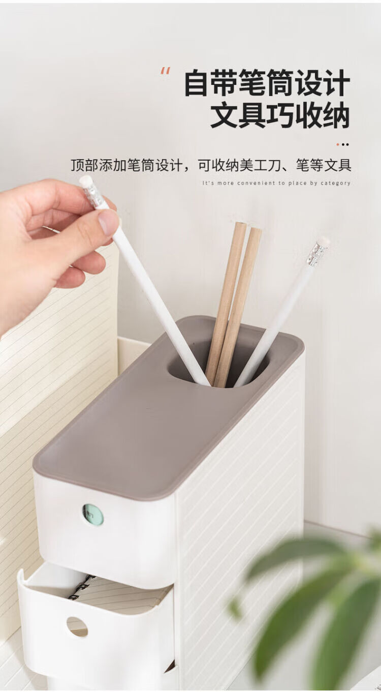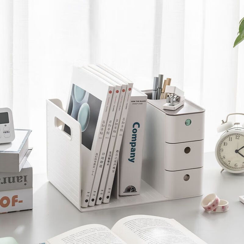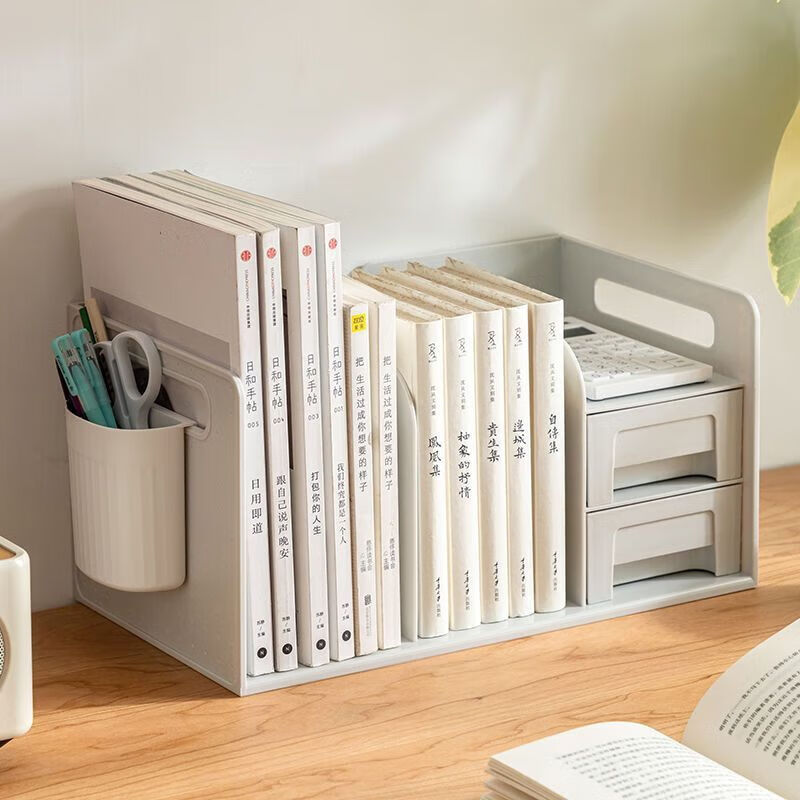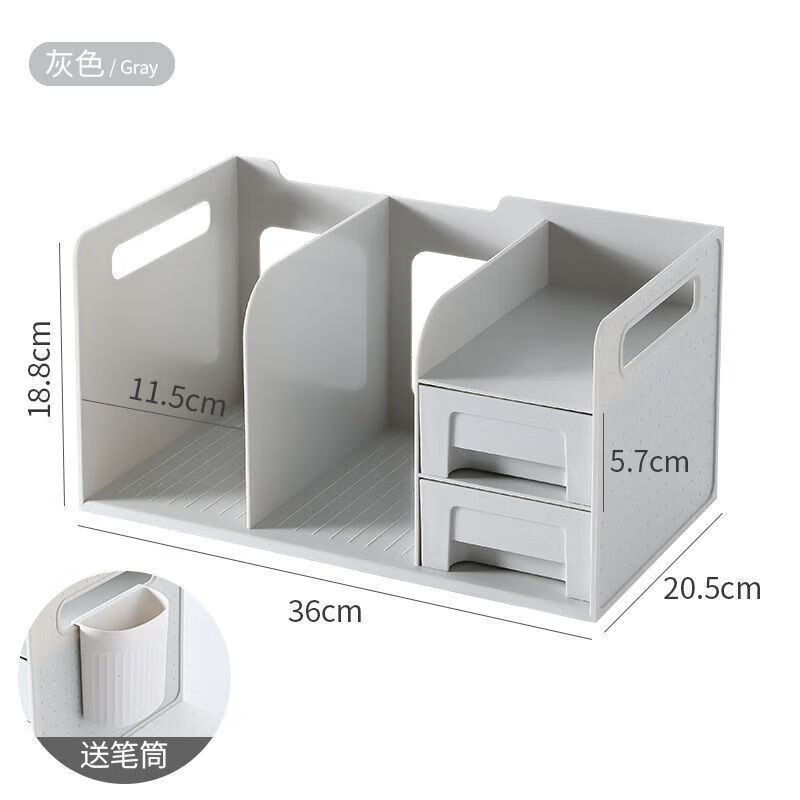 简易收纳架桌面抽屉式 灰白色三层/一体笔筒