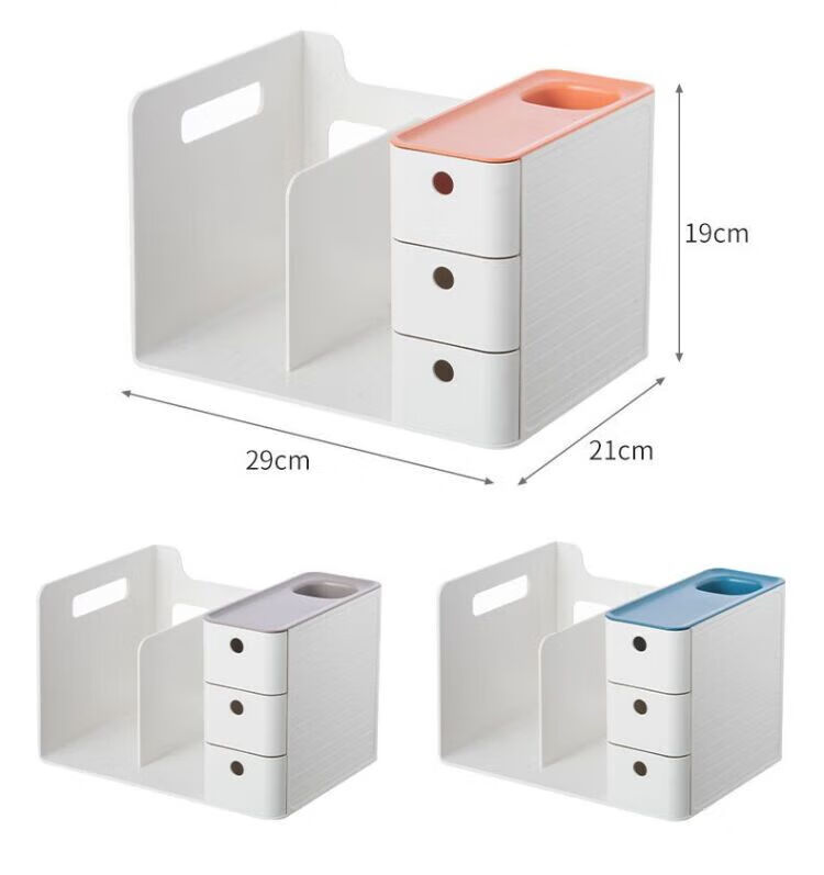 简易收纳架桌面抽屉式 天际蓝三层/一体笔筒