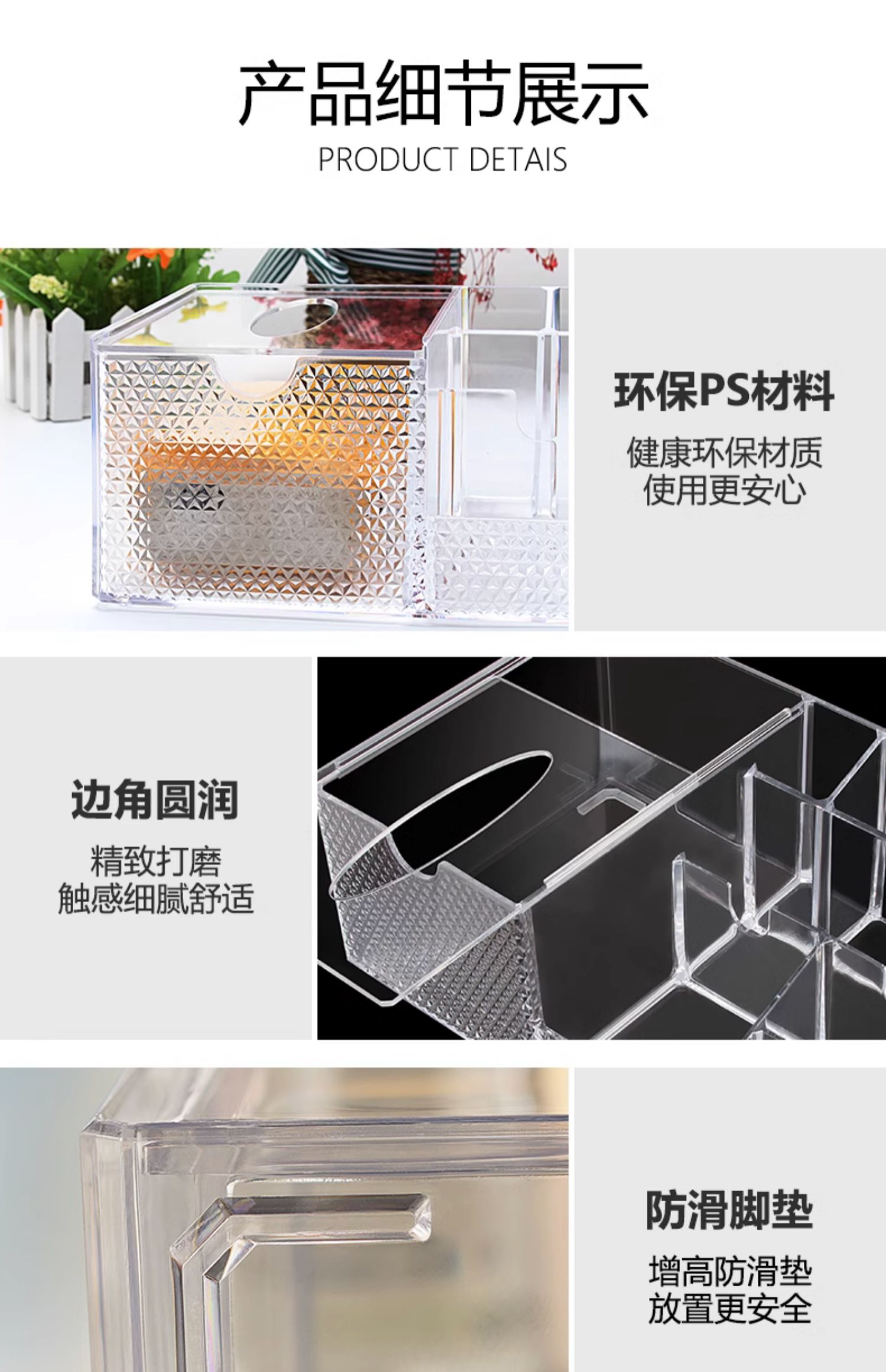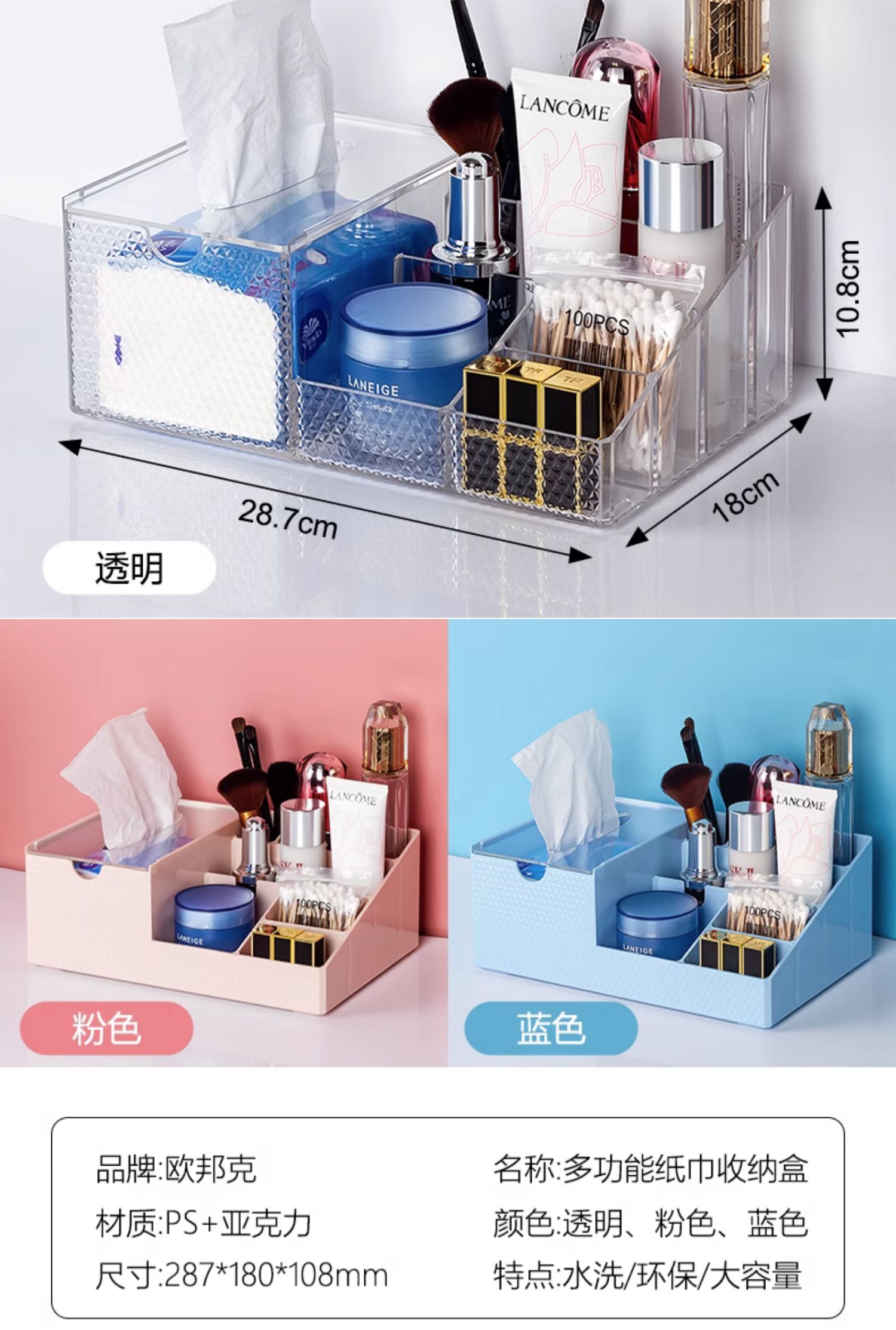 欧邦克亚克力收纳盒置物架透明纸巾盒