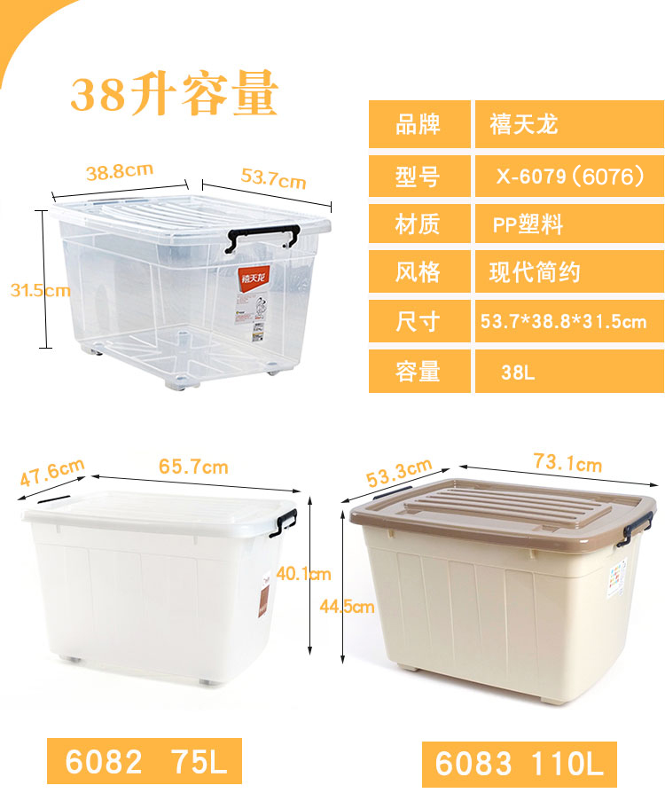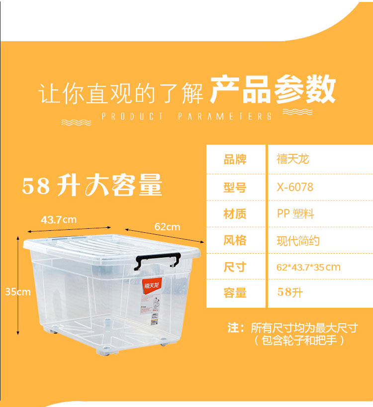 禧天龙带滑轮塑料收纳箱6076(1个/小号)