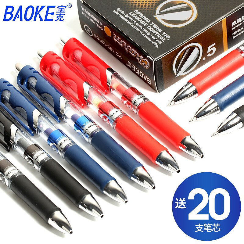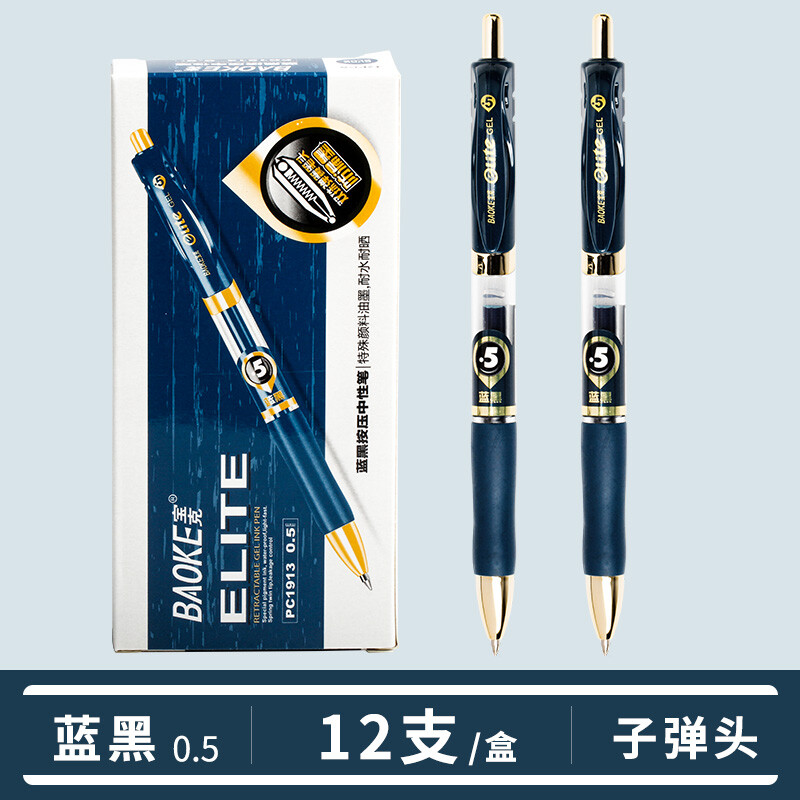 宝克按动中性笔水性笔按压式签字笔0.5mm学生办公用 蓝黑