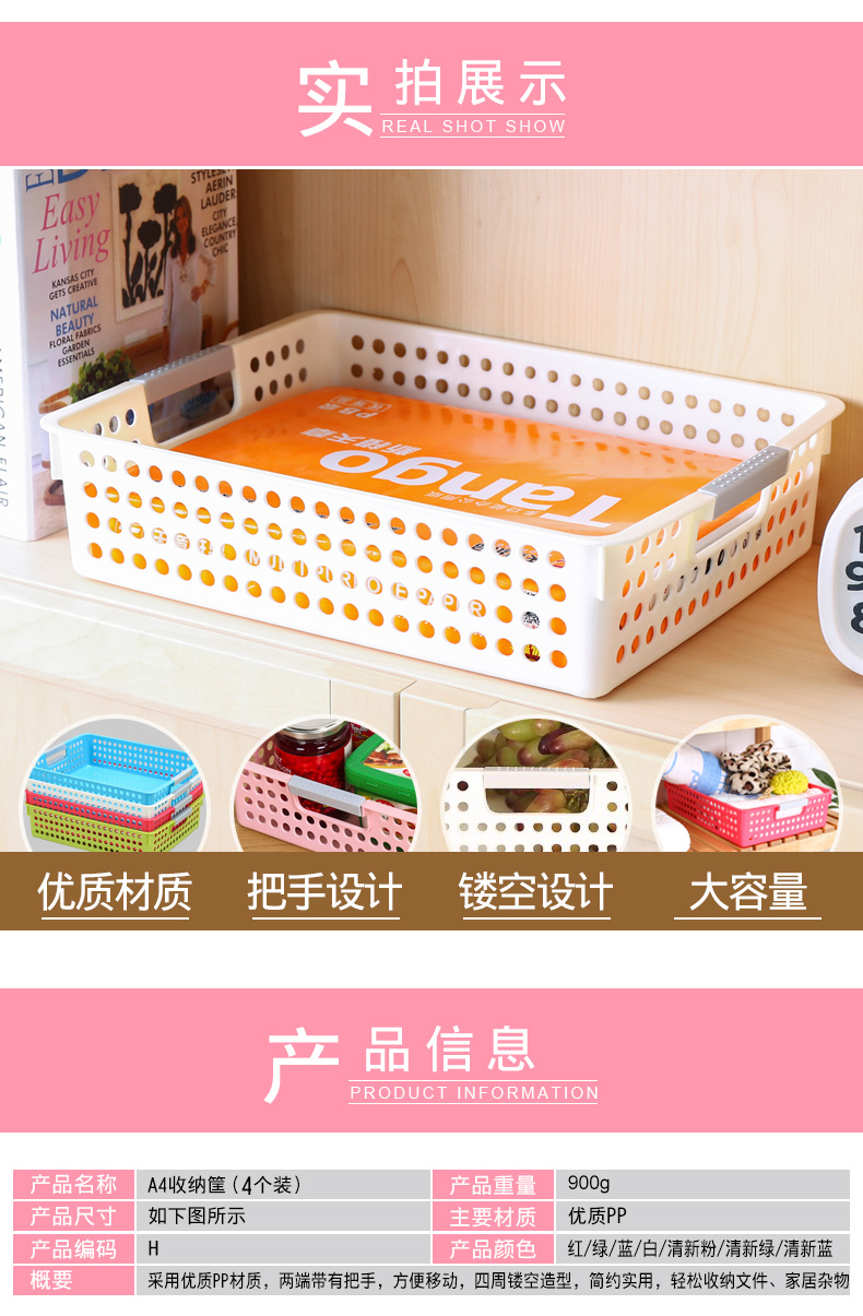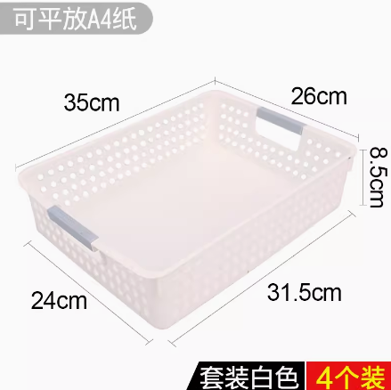 塑料篮筐A4收纳框文件篮 (白色/4个装)