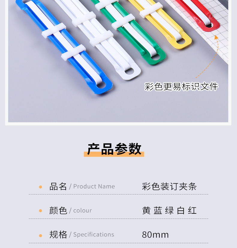 得力塑胶装订夹5548彩色【50套/盒】