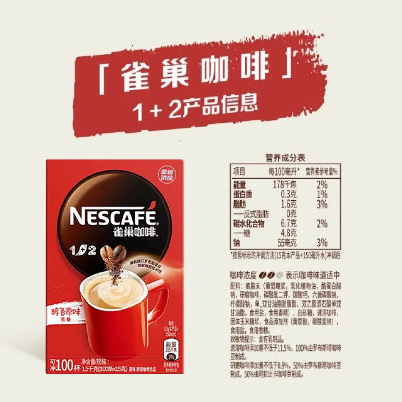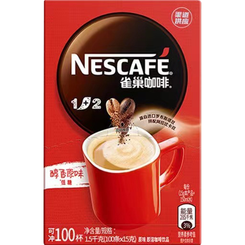 雀巢(Nestle)1+2原味速溶咖啡15g*100条袋装 1500g