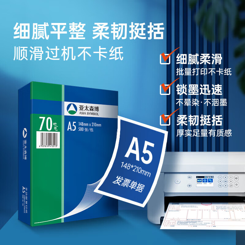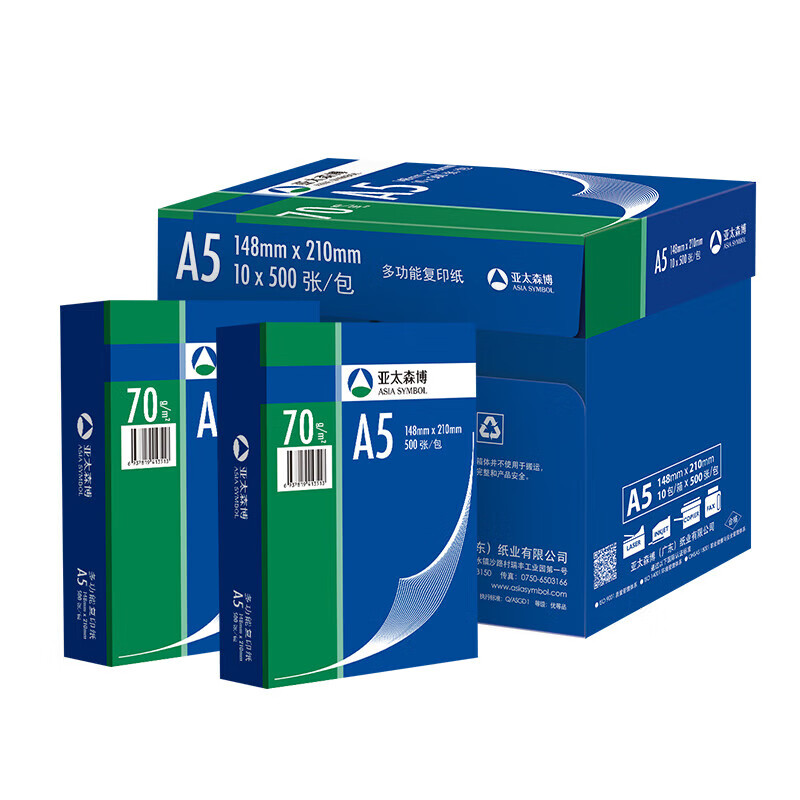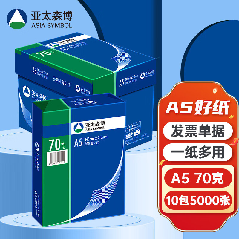 亚太森博 深蓝A5 70克复印纸 500张/包