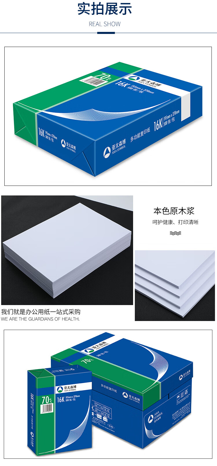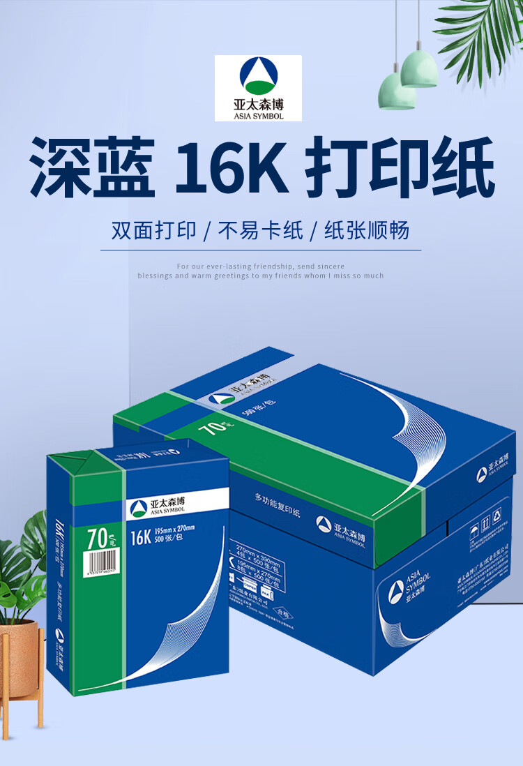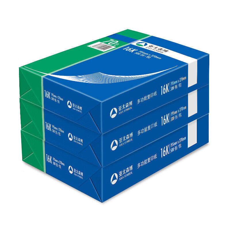 百旺亚太森博 70g深蓝16K 复印打印纸草稿纸资料试卷整箱医院清单纸 500张/包 8包(4000张)
