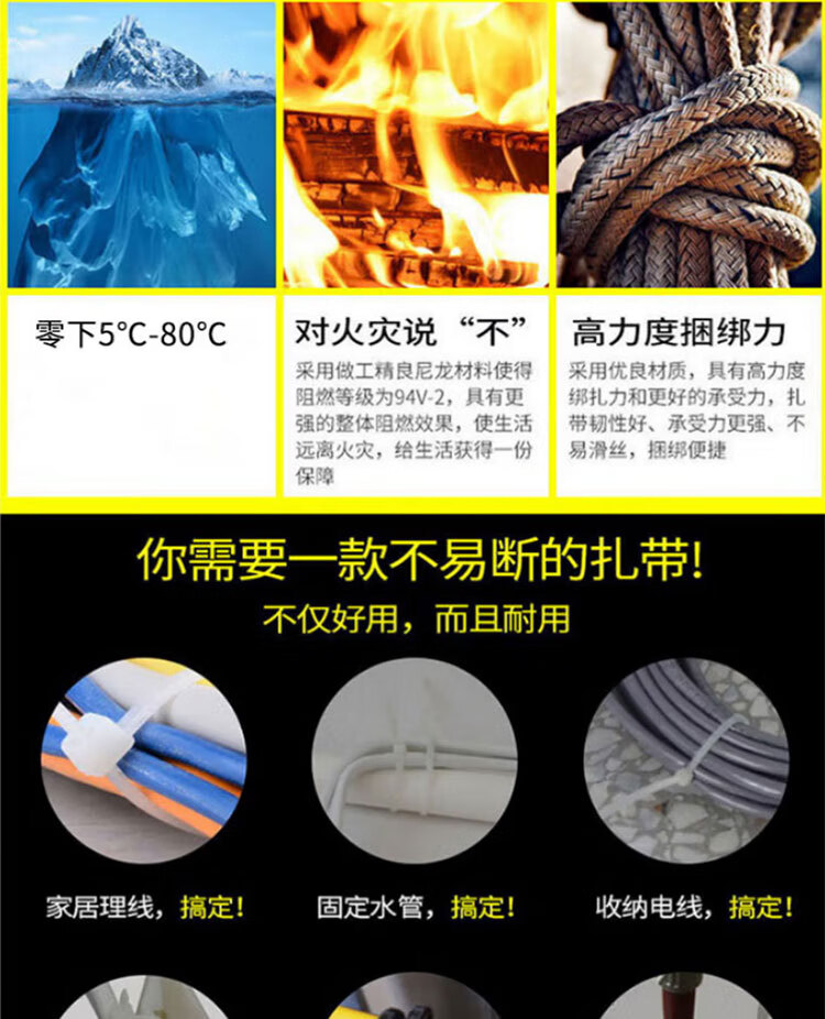 3*150mm 国标自锁式尼龙扎带 绑扎线束线带(1000条/包)
