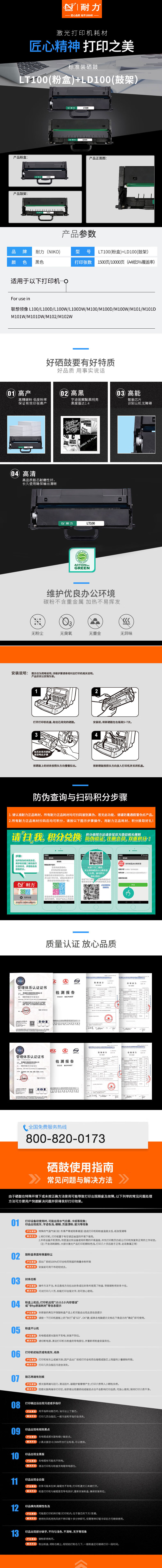 耐力 LT100粉盒 适用联想M100W M101dw M102w L100W M101 M102
