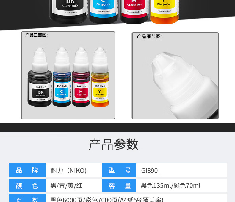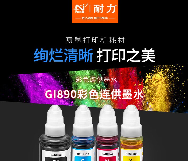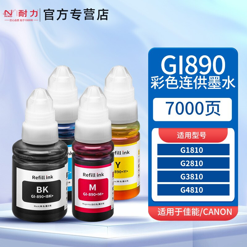 耐力GI890连供墨水适用佳能G1800 G2810 G3000 G3810 G4800 打印机 四色连供套装墨水