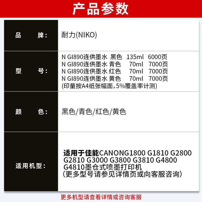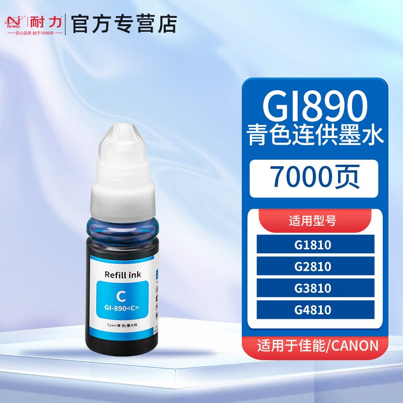 耐力GI890连供墨水适用佳能G1800 G2810 G3000 G3810 G4800 打印机 青色连供墨水70ml