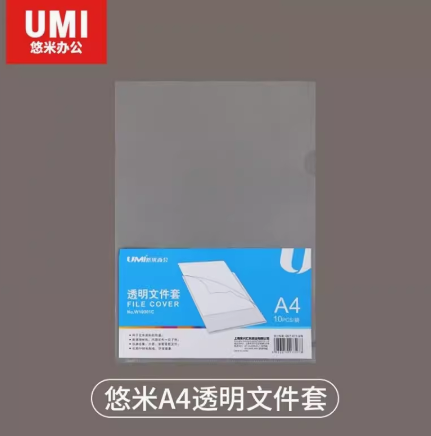 悠米A4透明文件套 W10001C单片夹E310(10个/包))