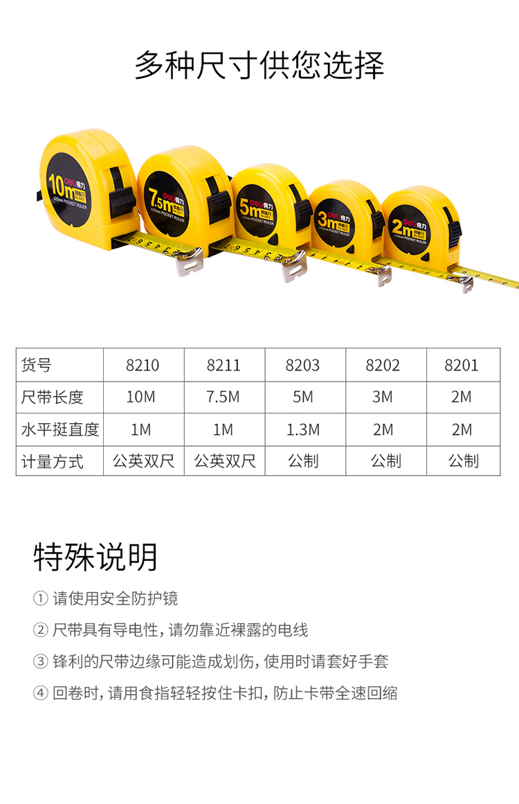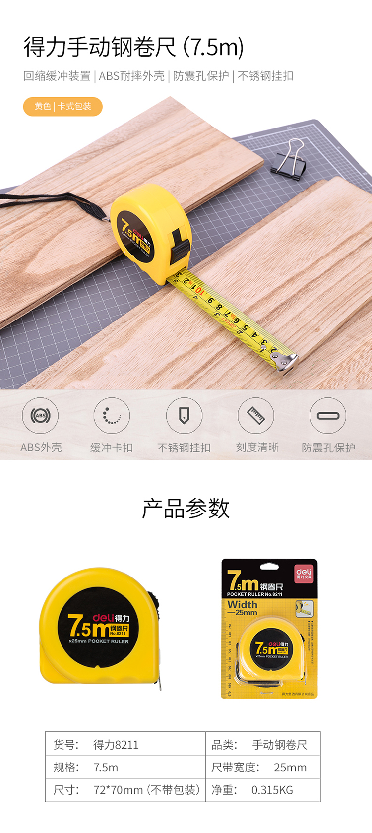 得力(deli)卷尺5米【7.5米】7.5m*25mm-8211