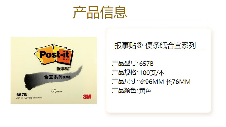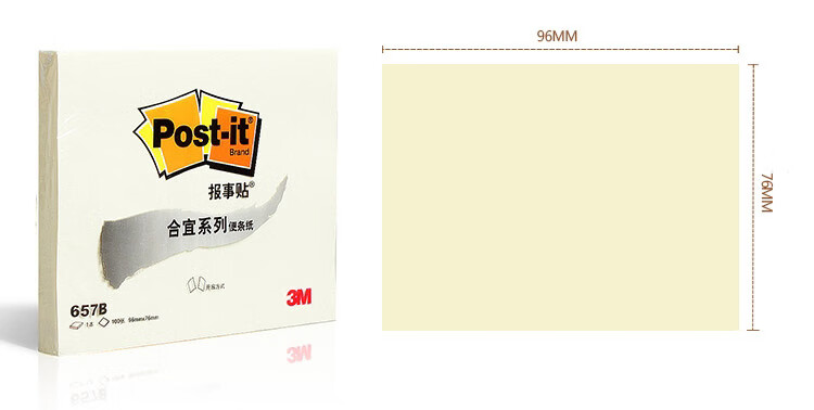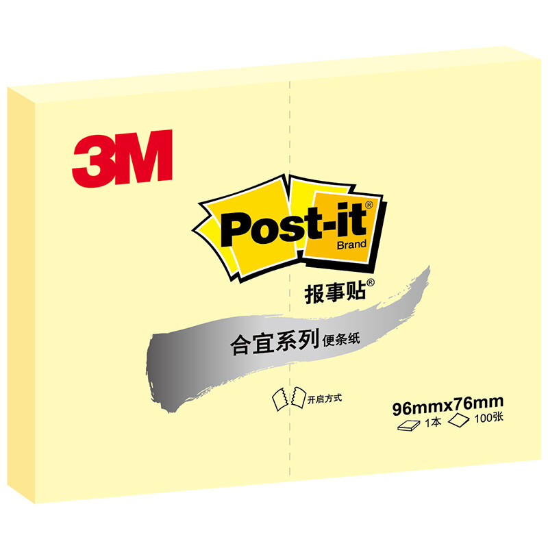 3M 大号长方形 96×76mm 便条纸/报事贴/合宜系列657B(黄色)1本