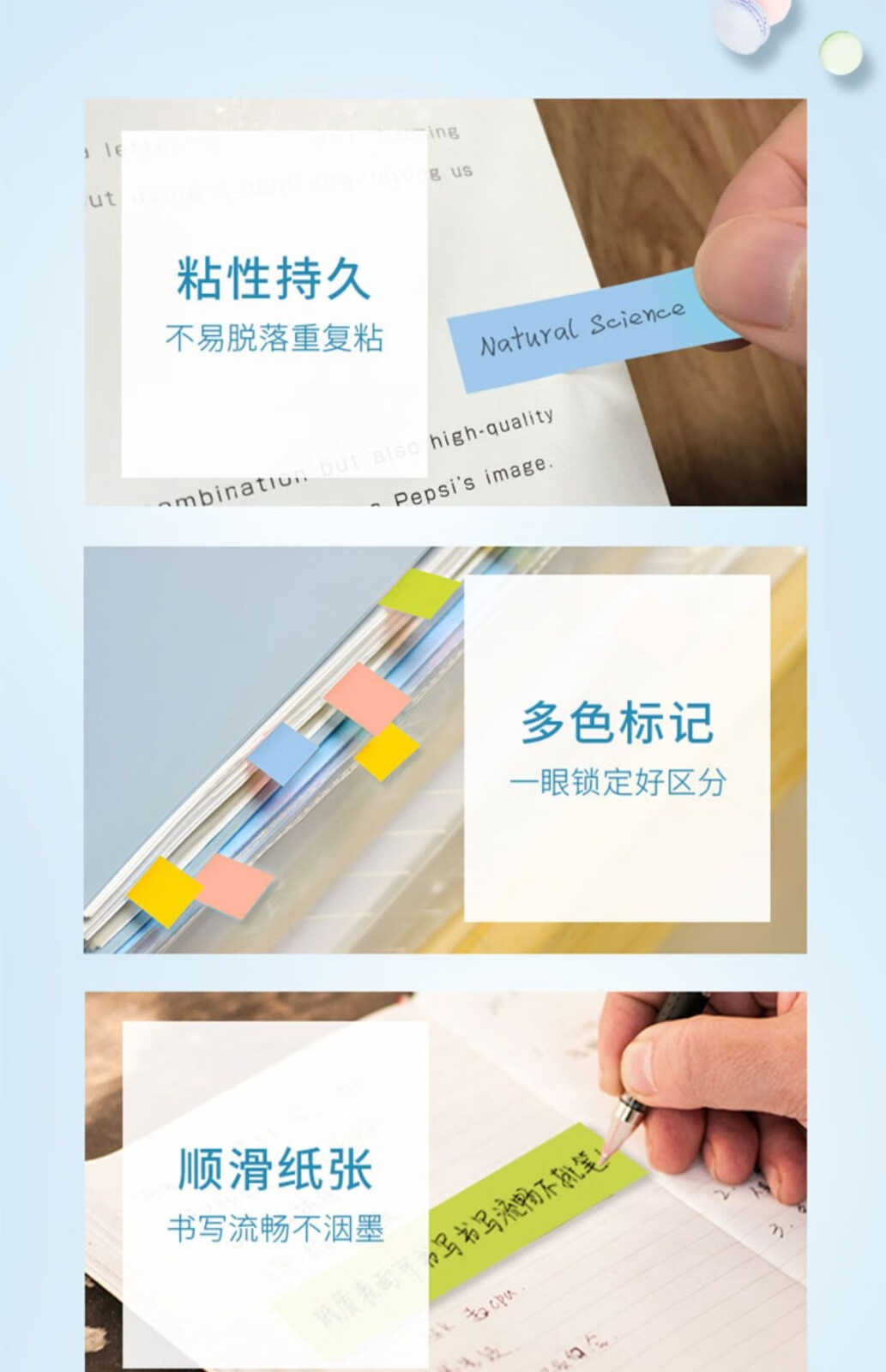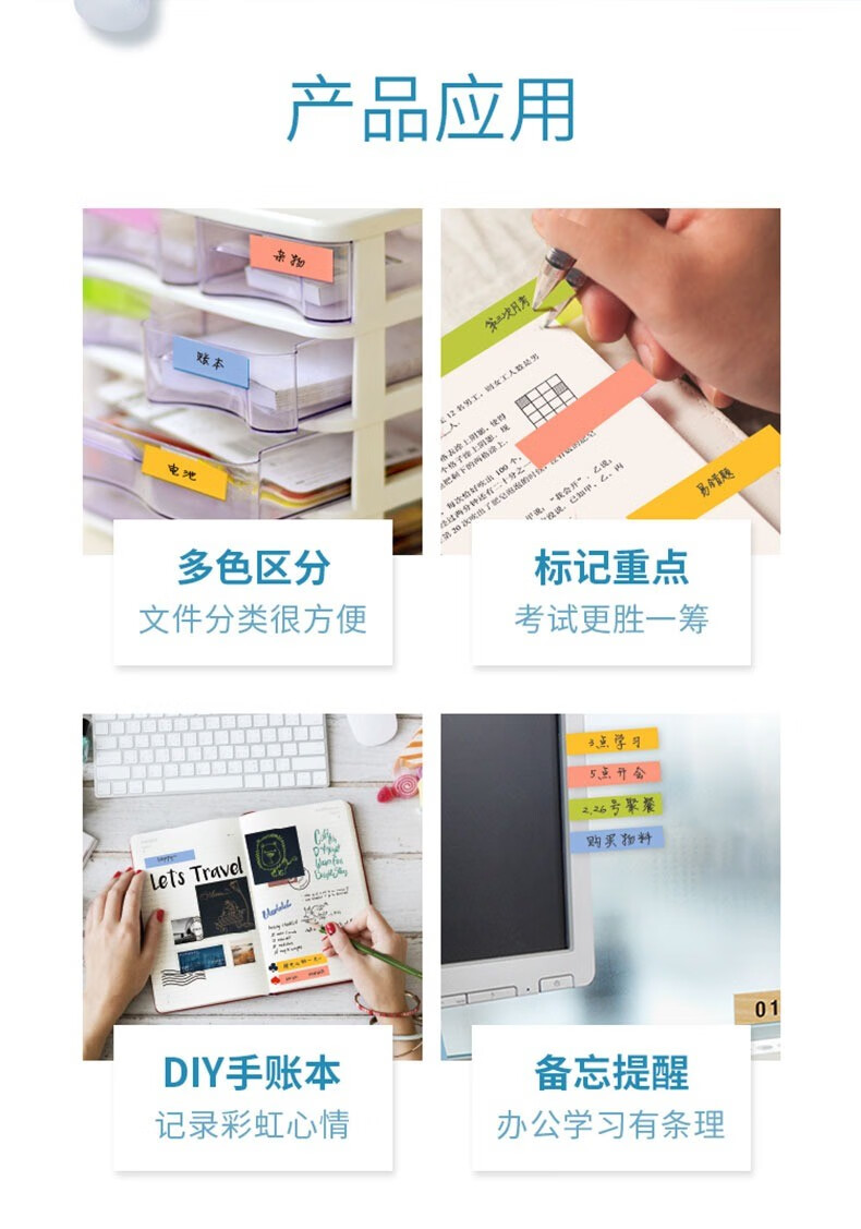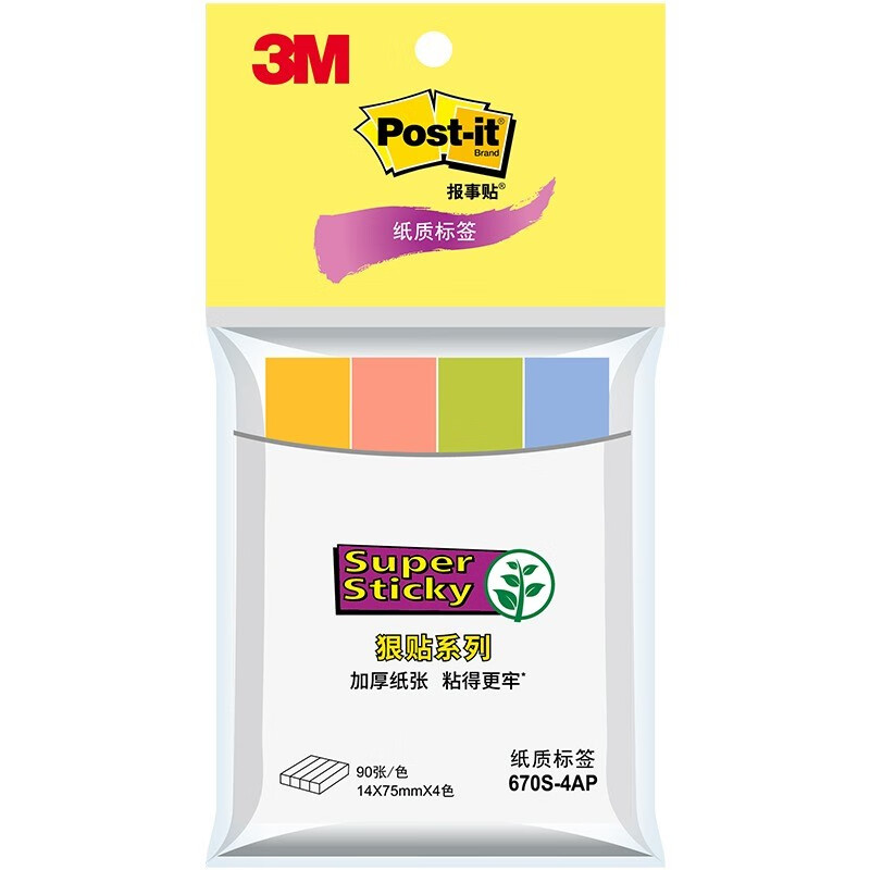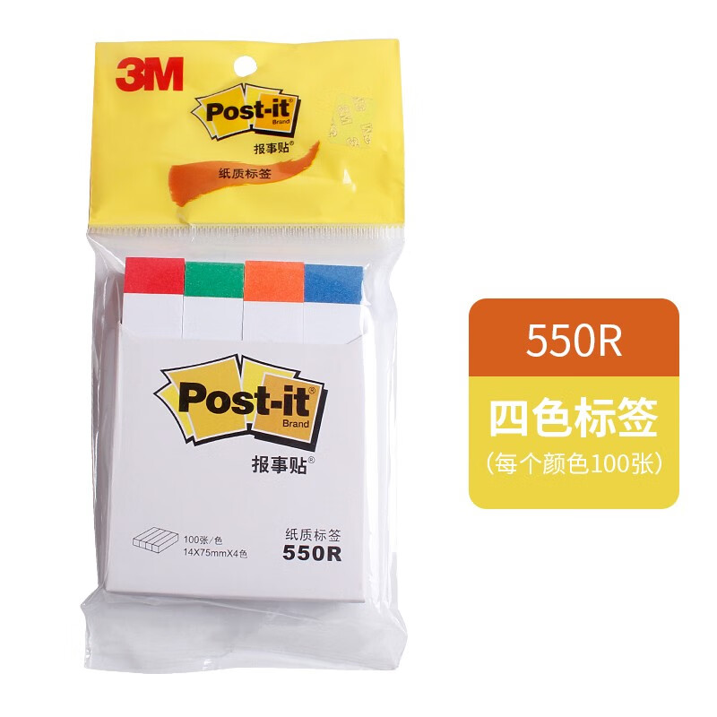 3M报事便签贴学生N次贴550R 四色纸质标签 单包装