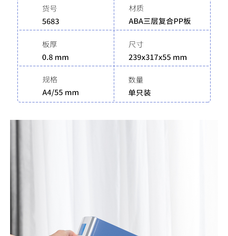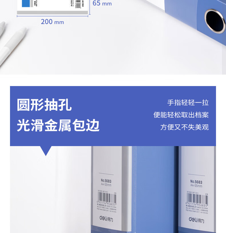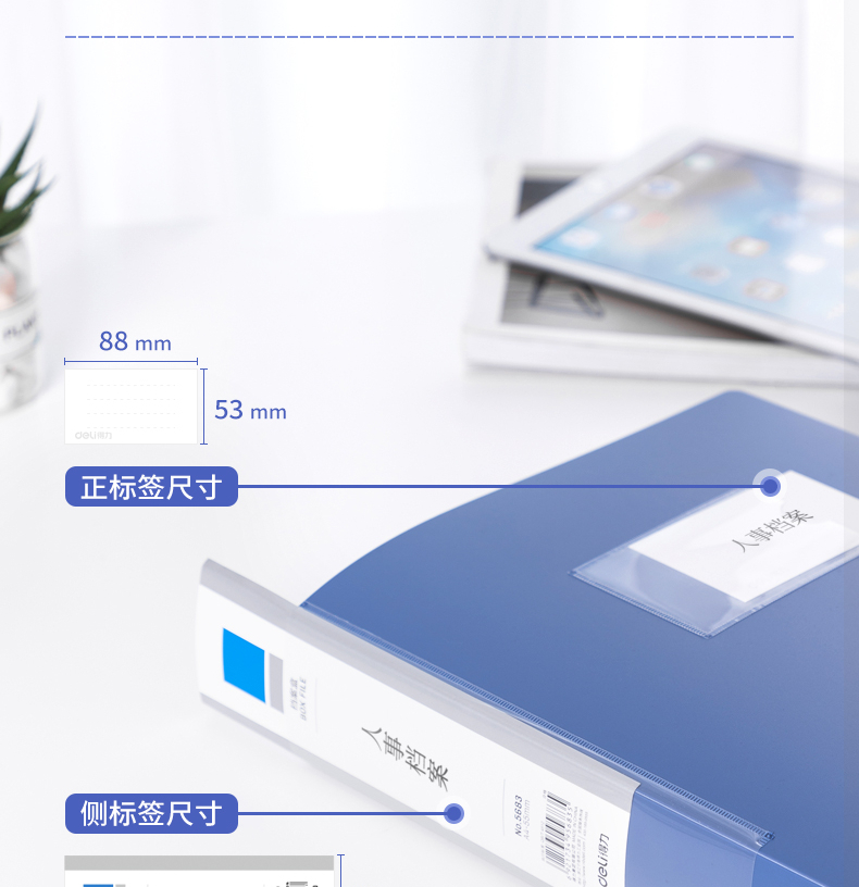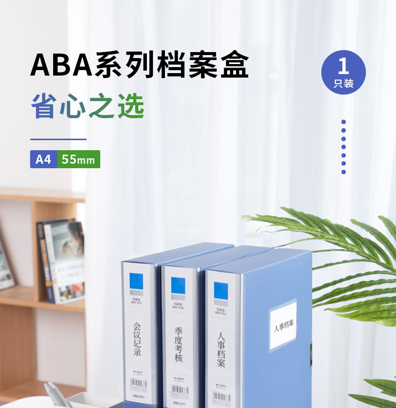 得力55mmA4塑料文件盒档案盒5683蓝色