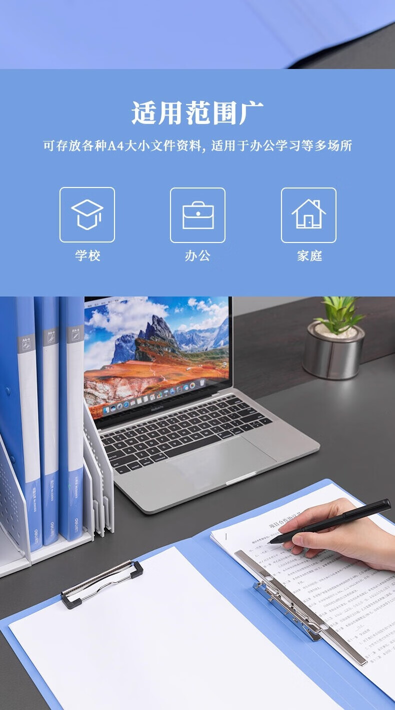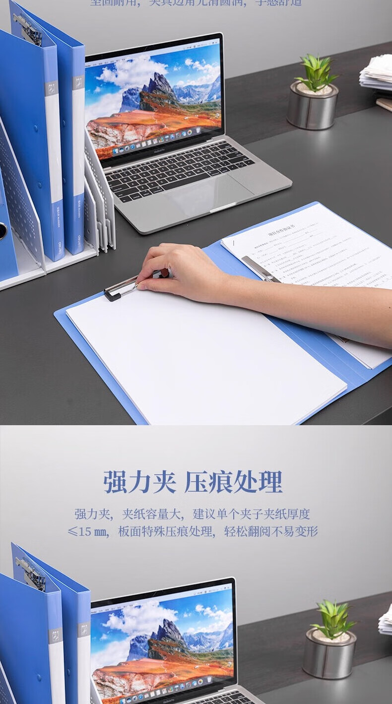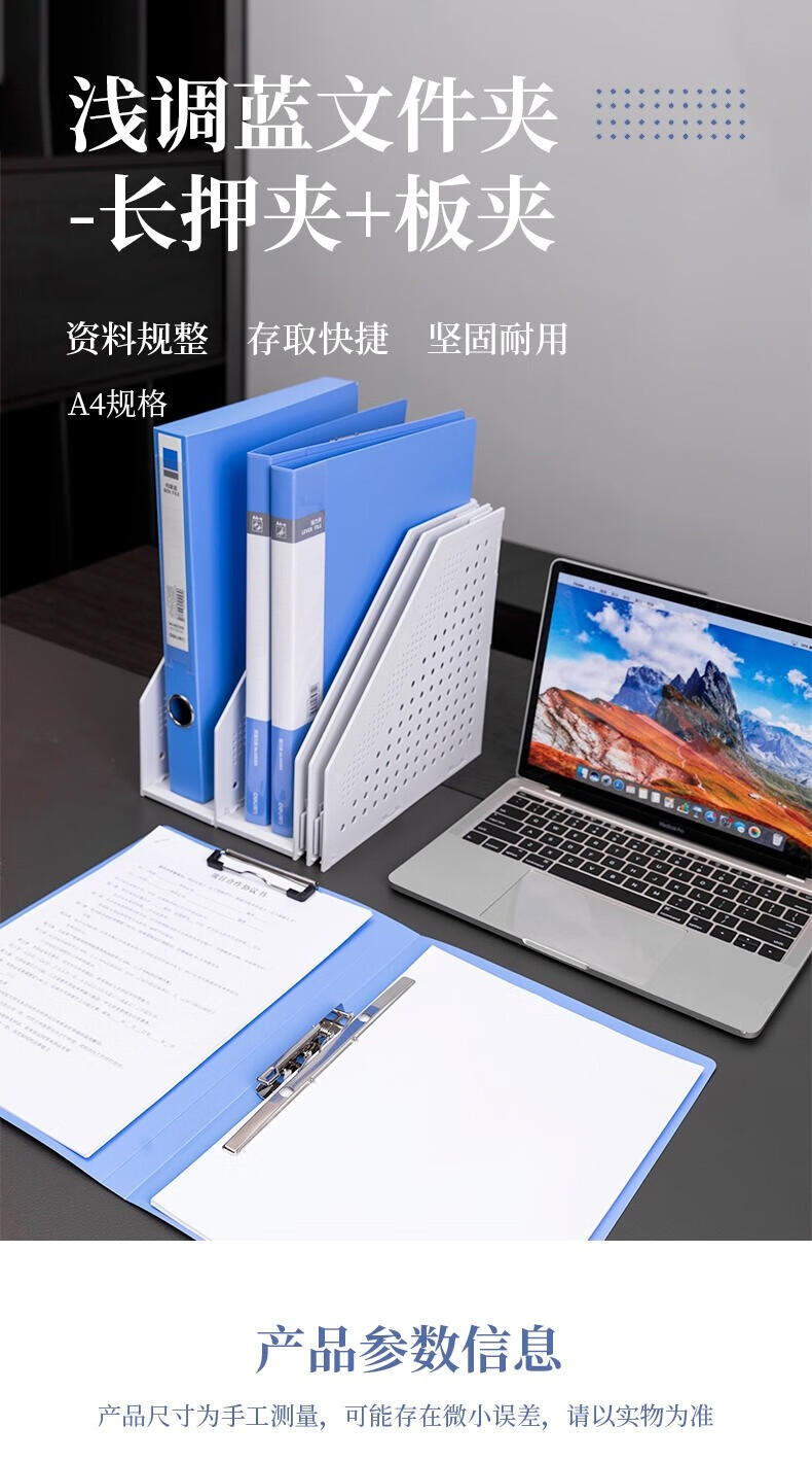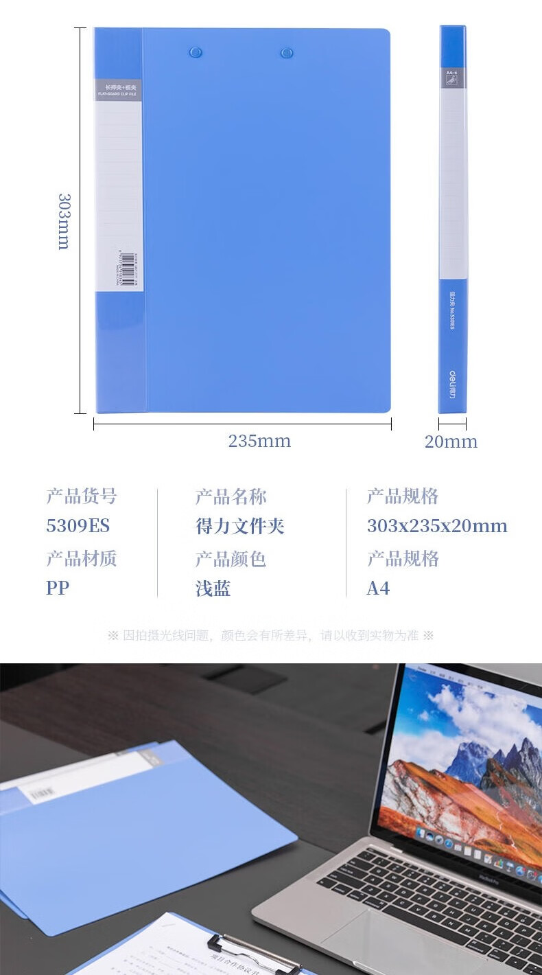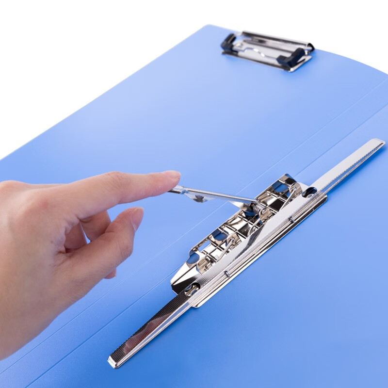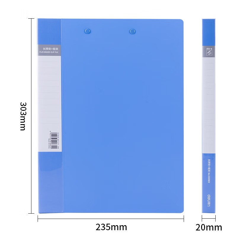 得力5309ES文件夹加板夹双夹浅蓝色A4