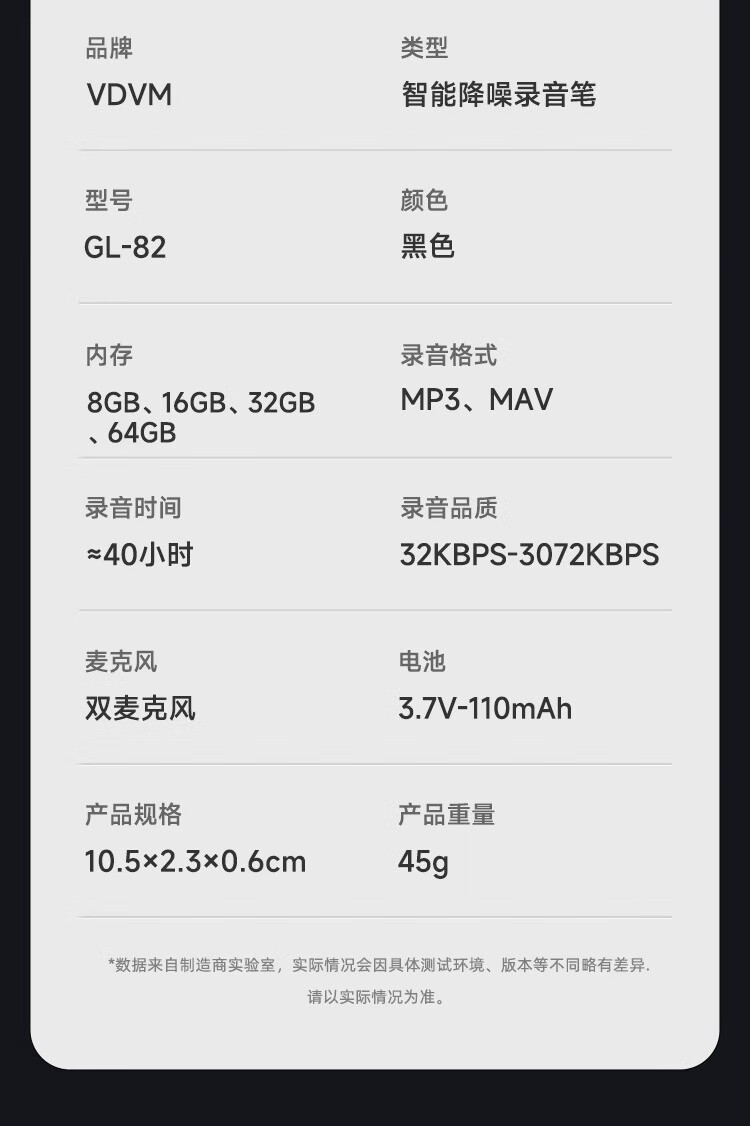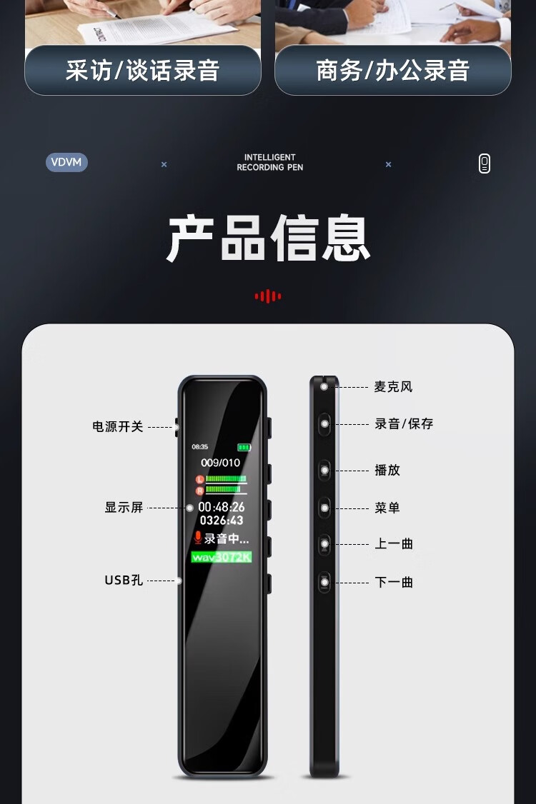 VDVM录音笔16GB (W5279-16g) 黑色