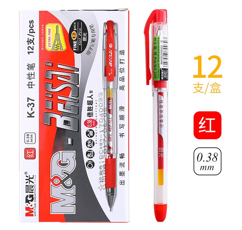 晨光K37中性笔 0.38mm细笔头 黑【1支装】