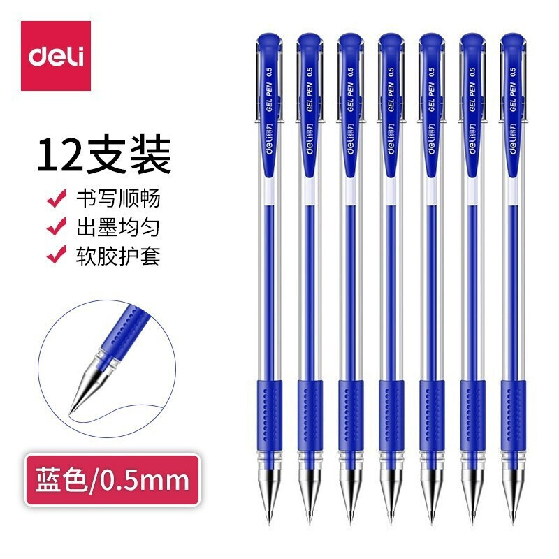 得力6600ES中性笔水笔0.5MM 蓝 12支/盒