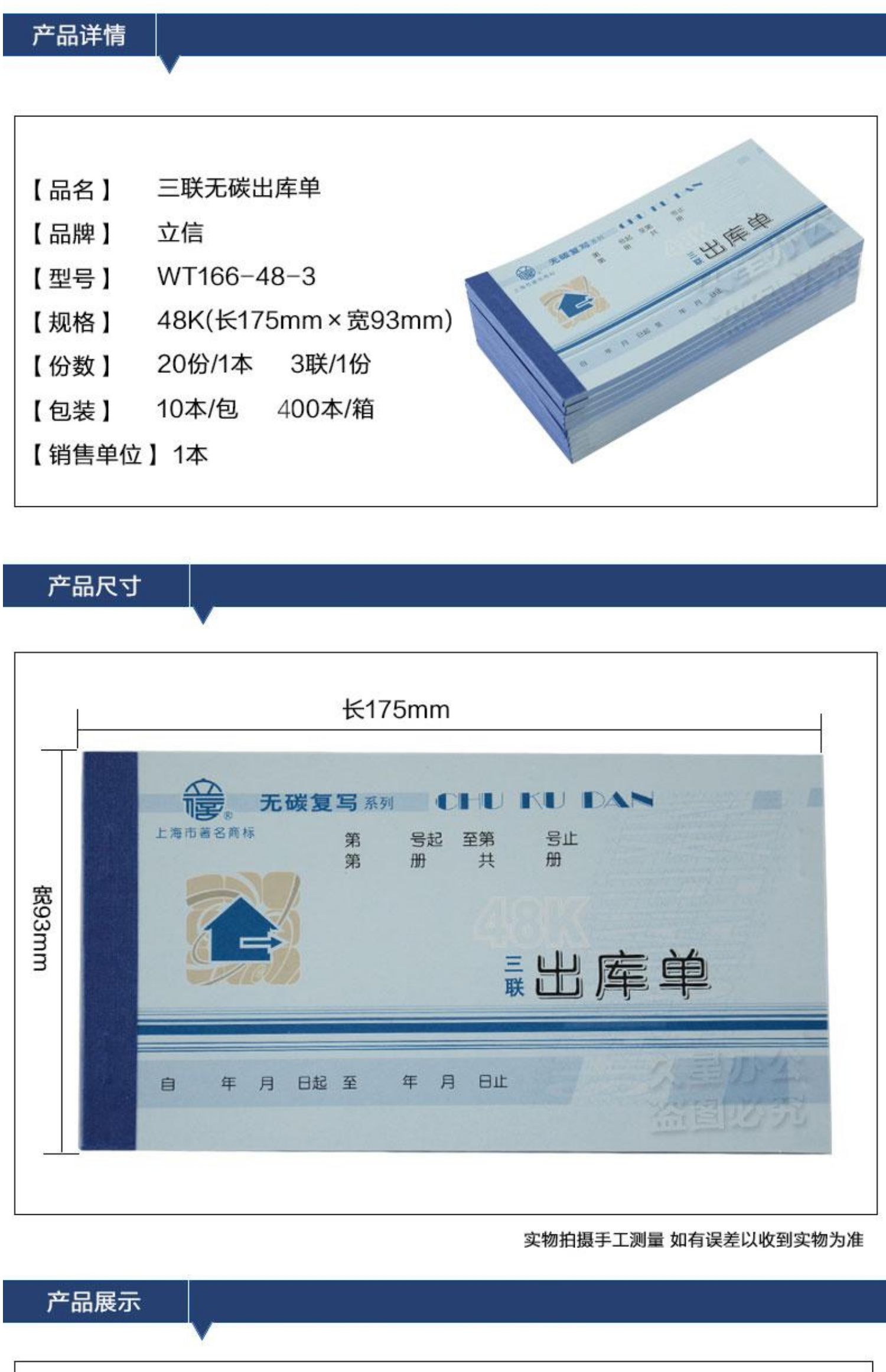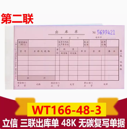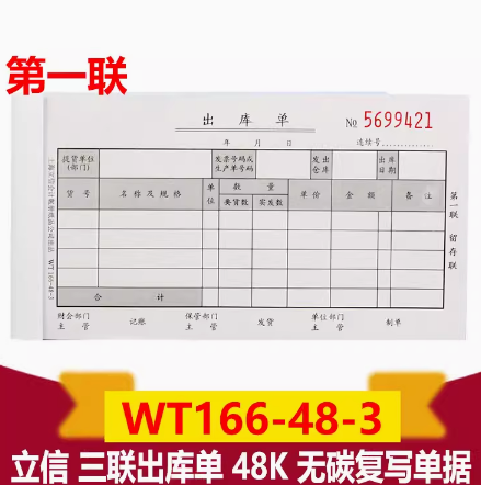 立信WT166-48-3三联出库单 48K 无碳复写