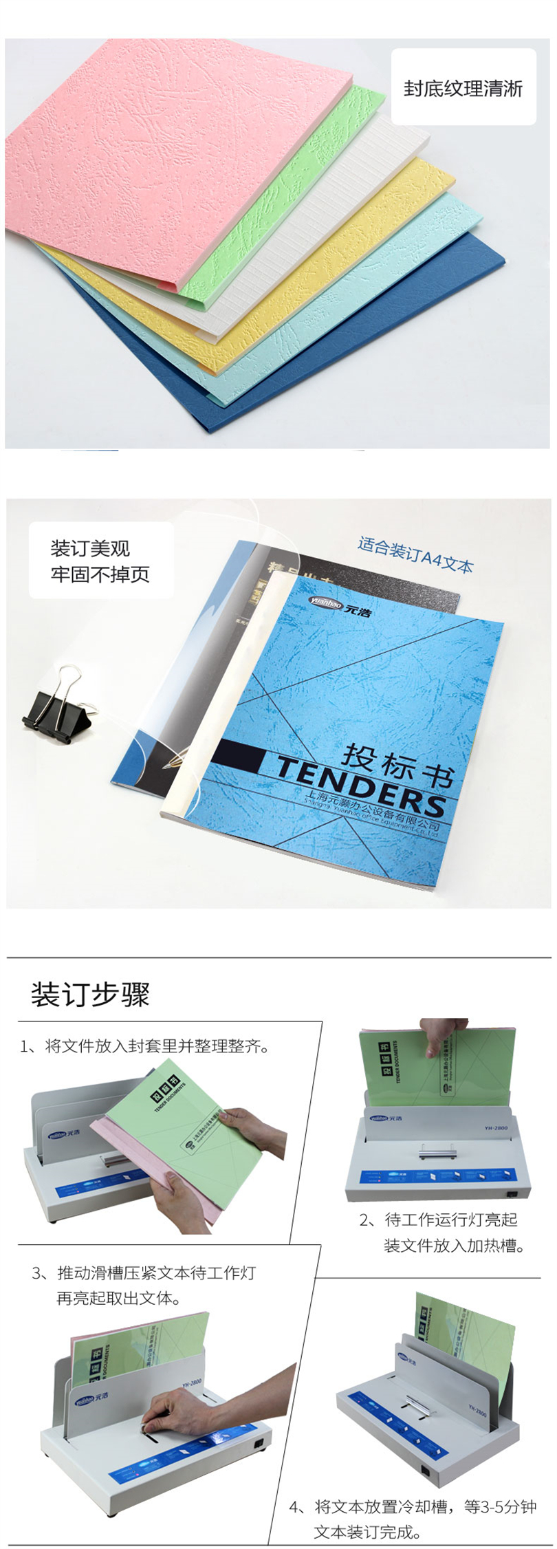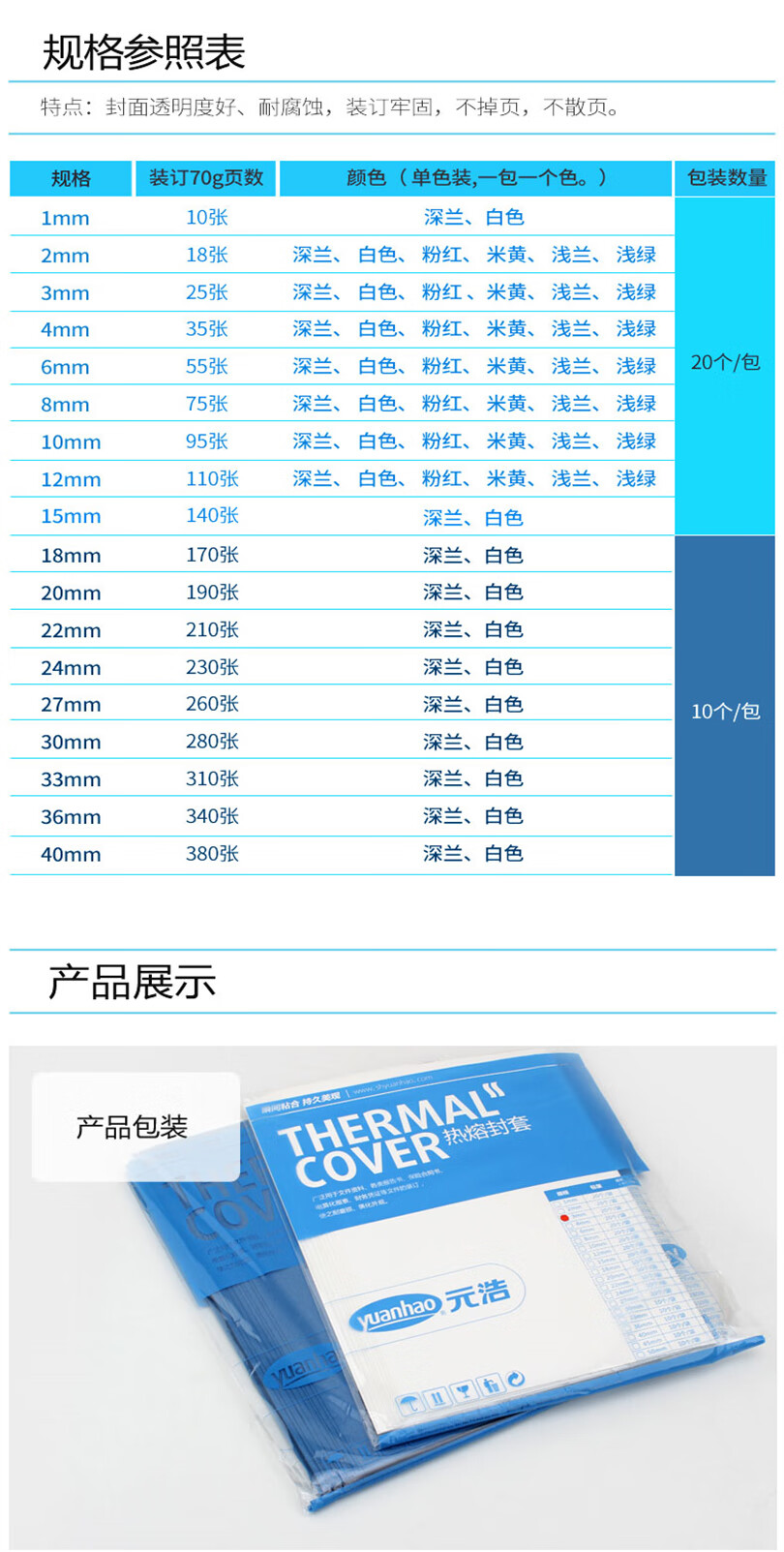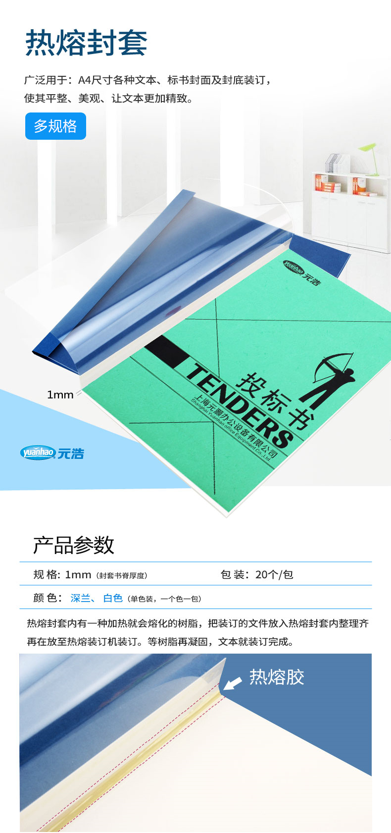 元浩 胶装热熔封套12mm可装订110张A4 pvc 白色