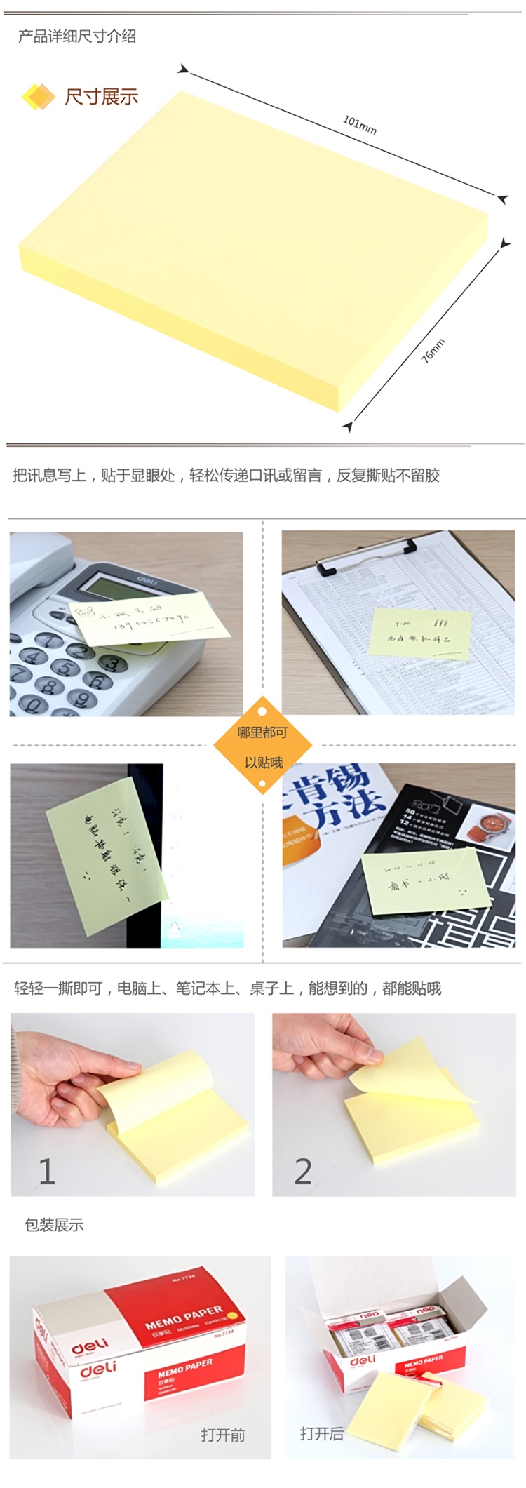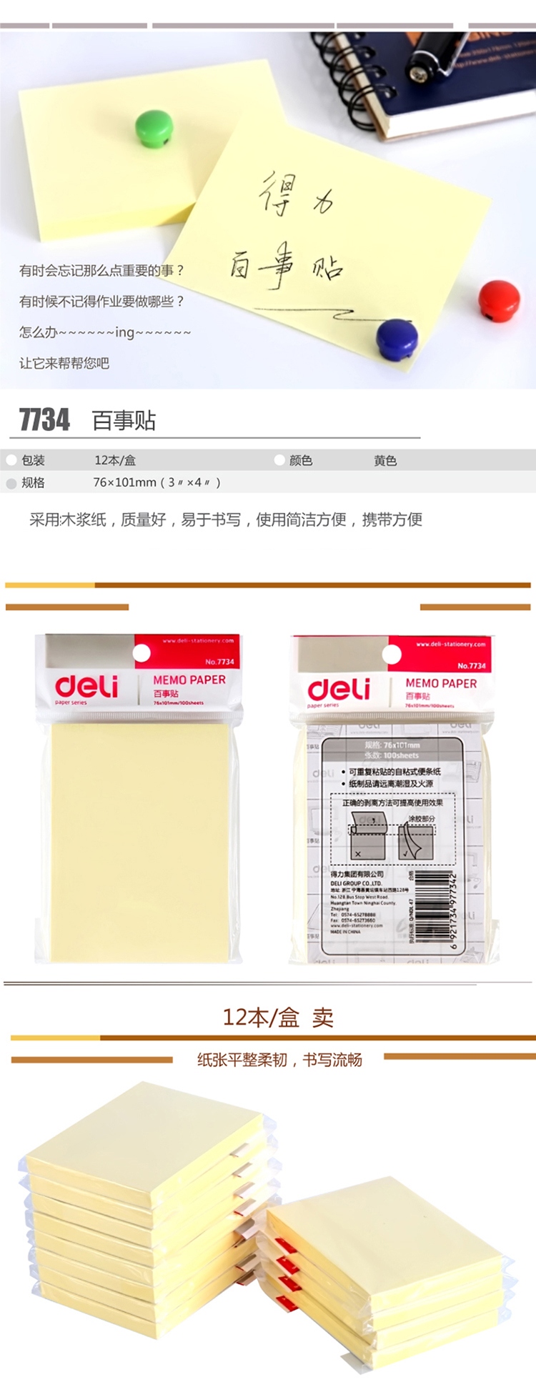 得力7733便利贴/标签纸/便签纸(76mm*76mm) 1本装