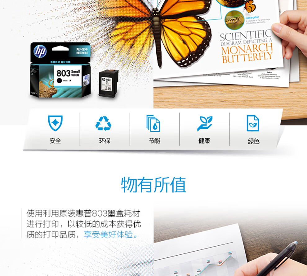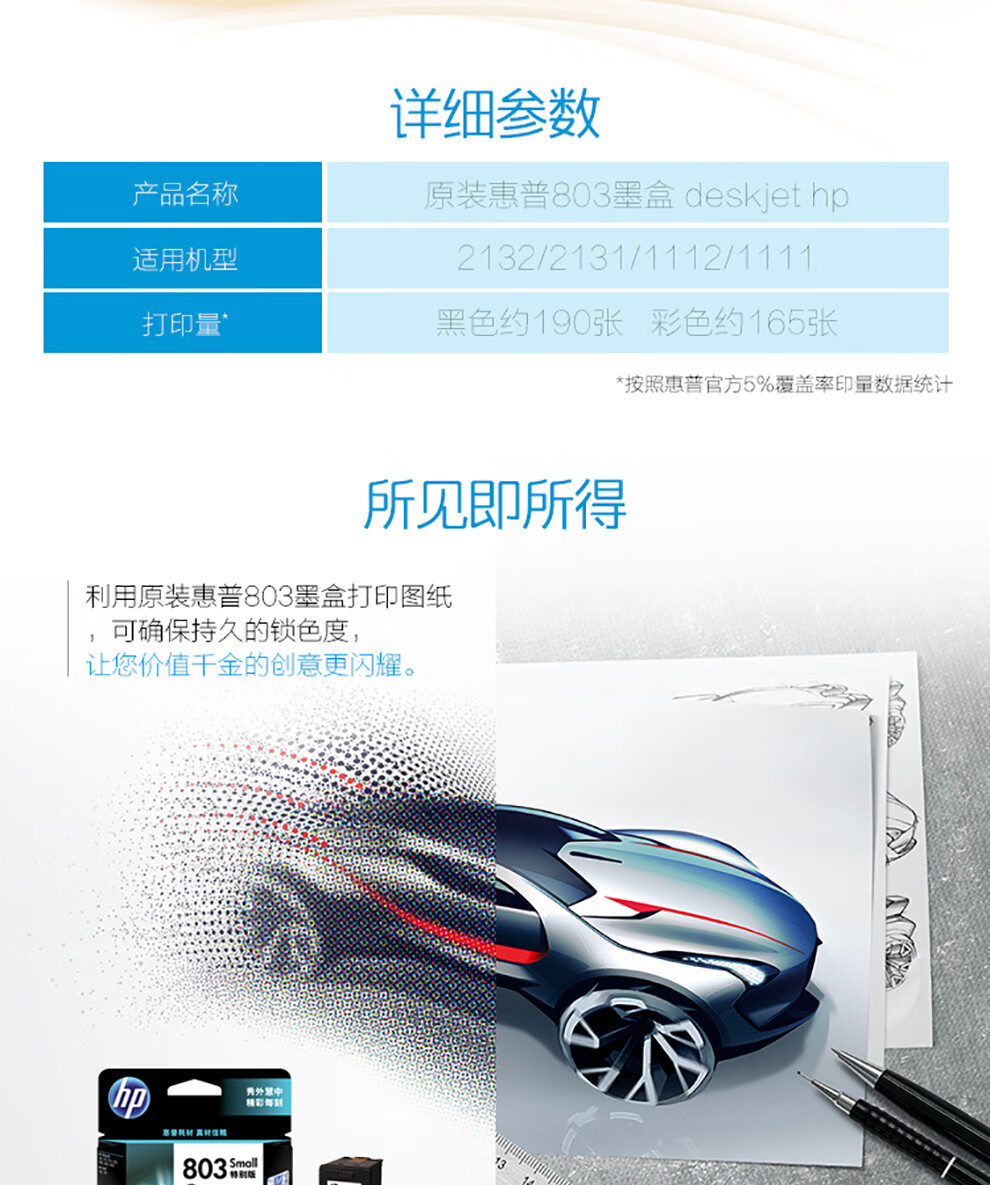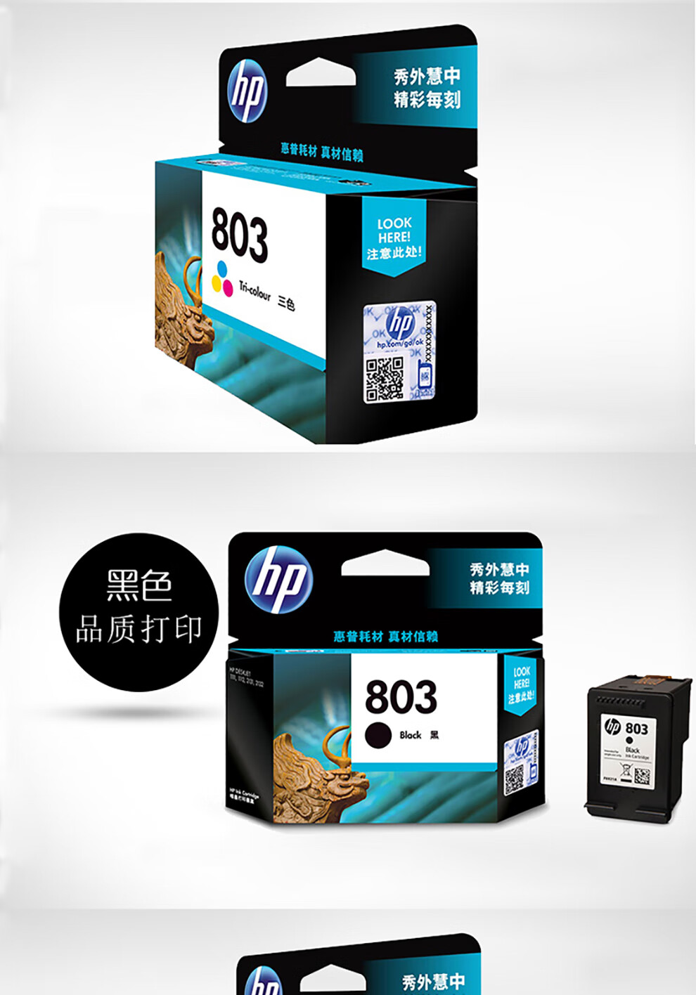 惠普803彩色墨盒原装Deskjet 1112 2131 2132 2621 2622打印机 803标准版彩色/约165页