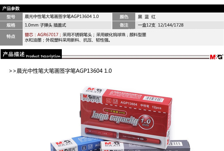 晨光AGP13604中性笔 黑色1.0mm