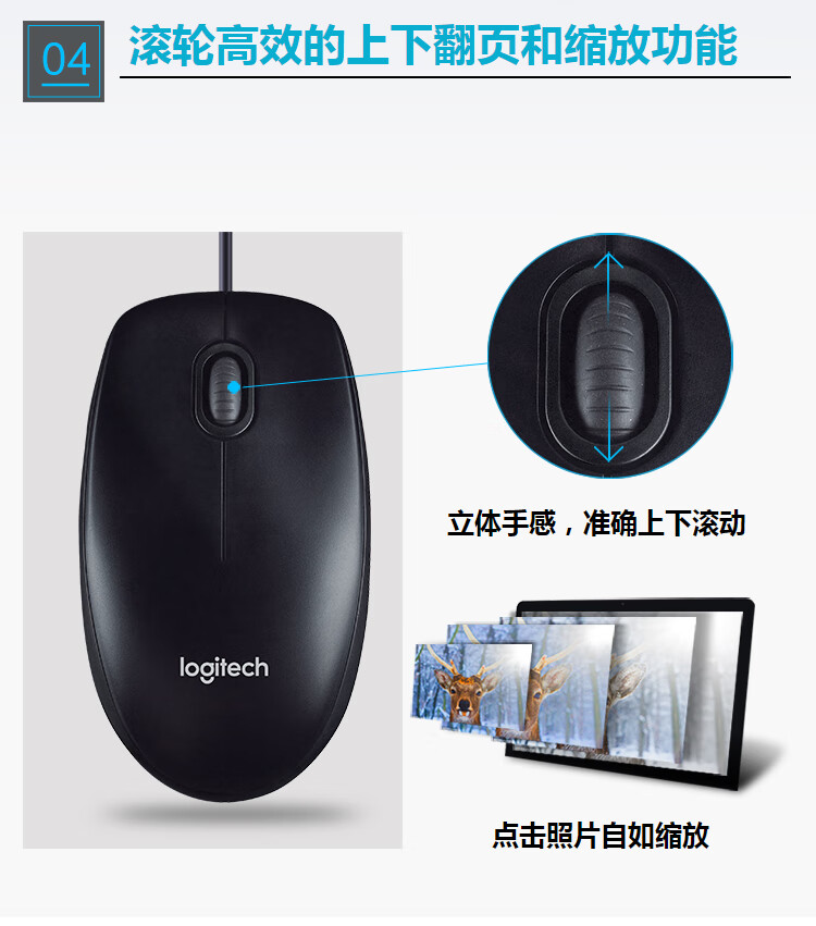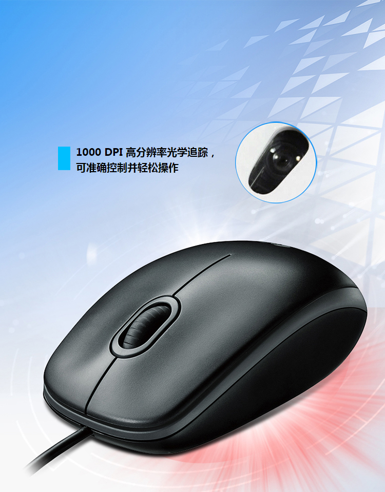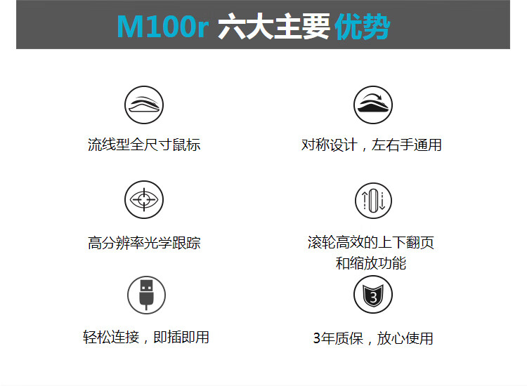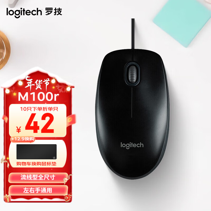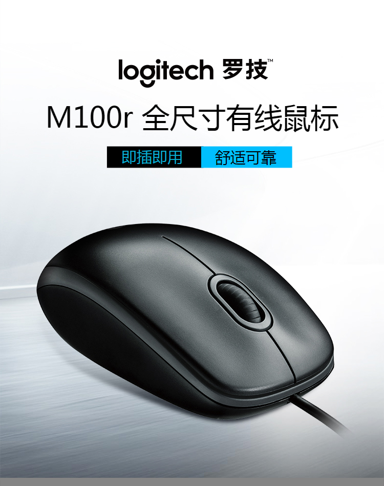 罗技M100r有线鼠标 黑
