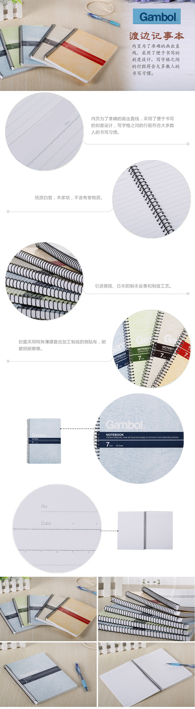 渡边S5503线圈本A5 50页笔记本螺旋本