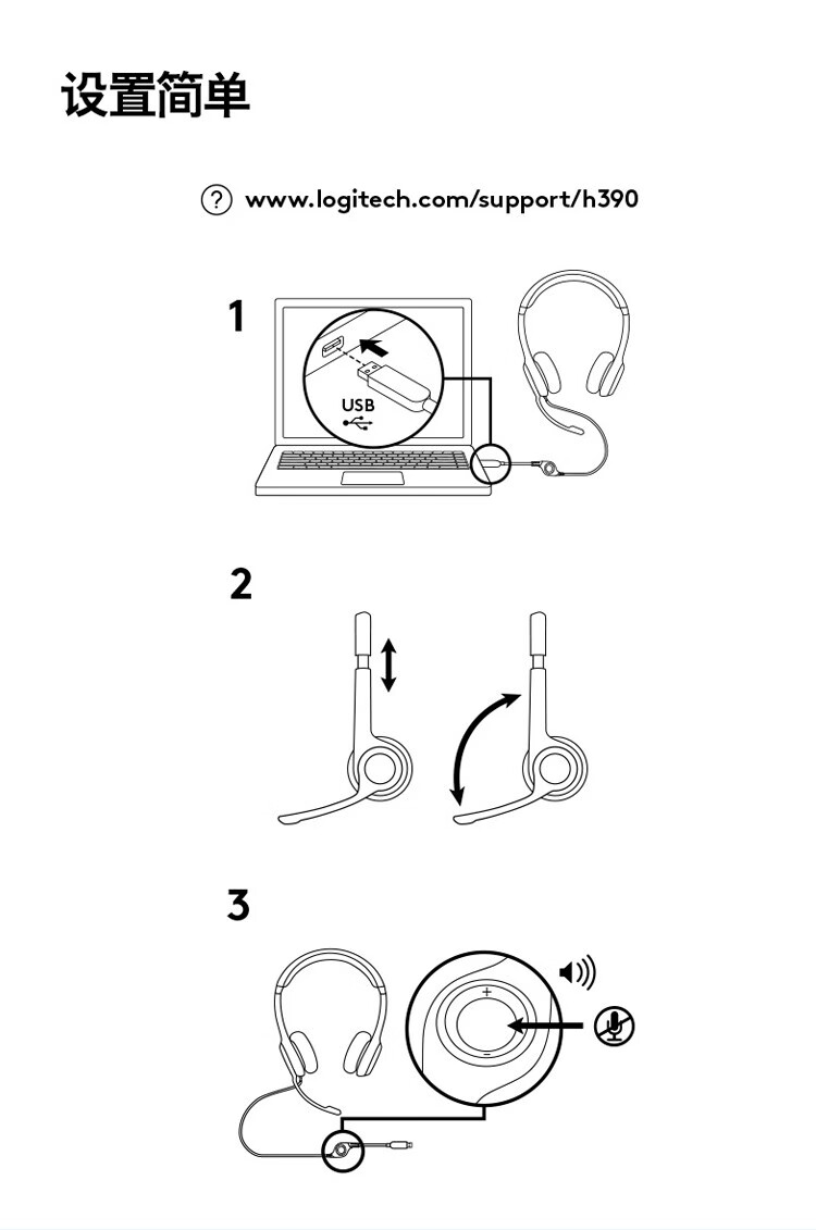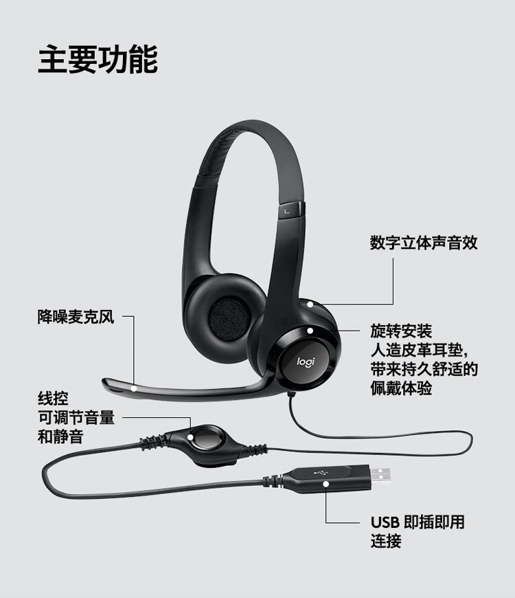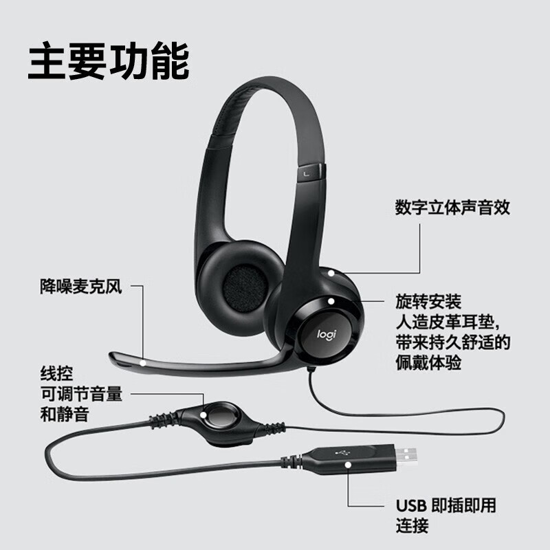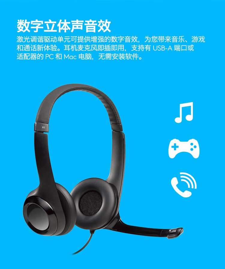 罗技H390/USB有线电脑笔记本耳机 黑色